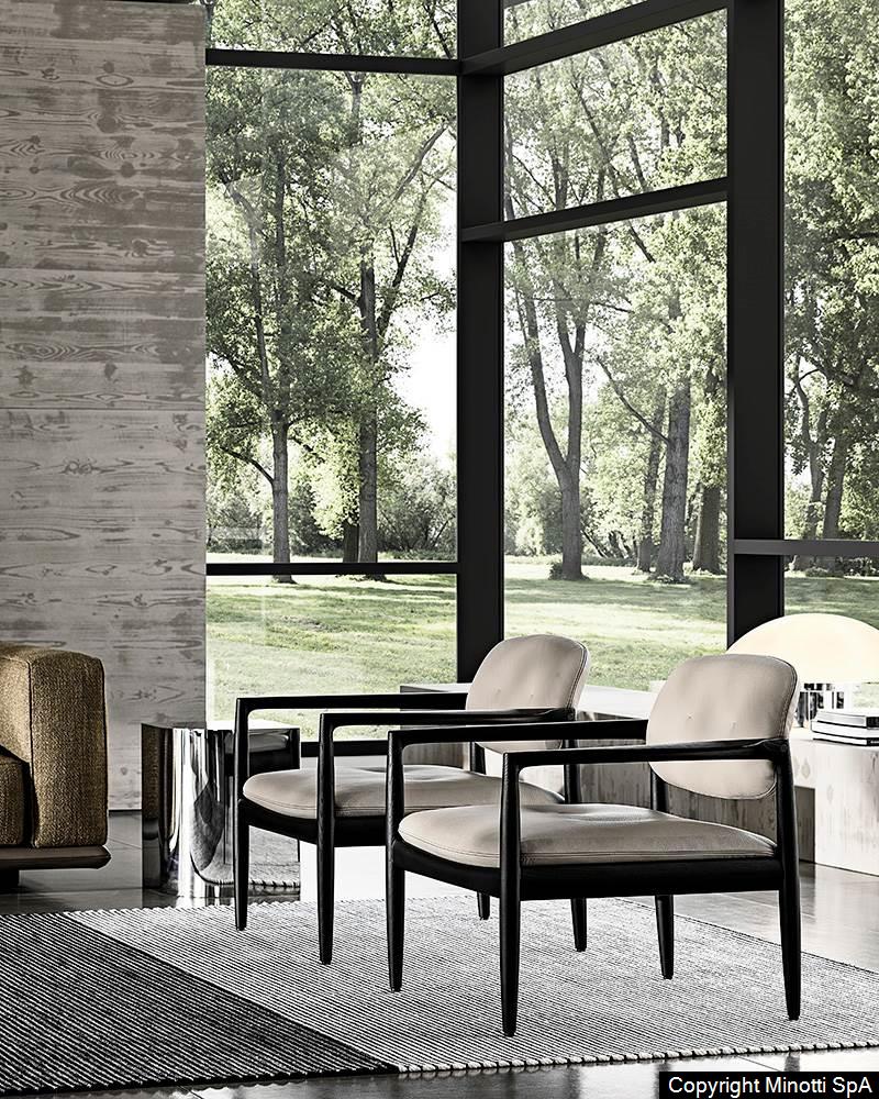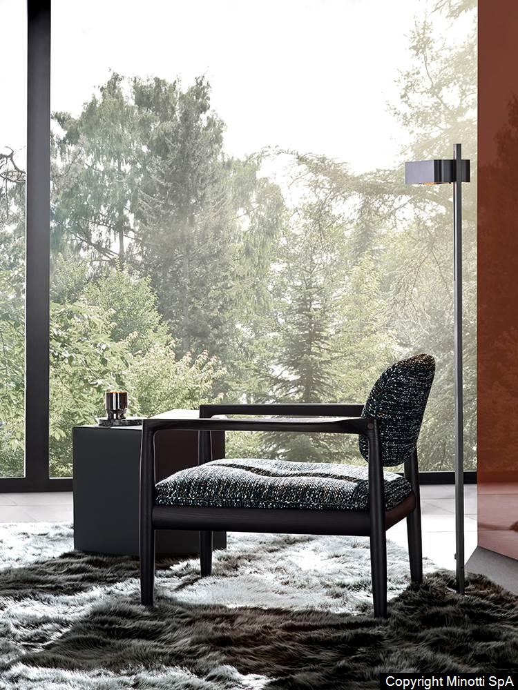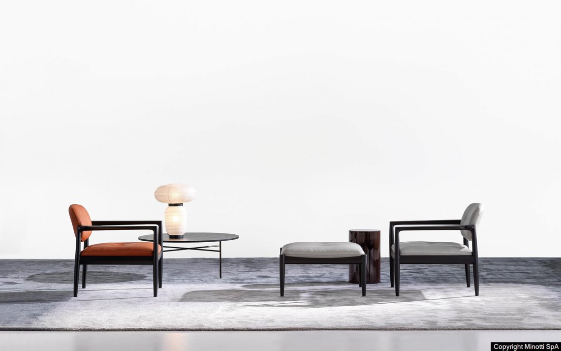 The wooden frame has a joint where the leg meets the armrest, both at the front and at the back: a structural joint that becomes decorative thanks to the clever use of the wooden material. In this project, the great expertise in woodworking that has always been characteristic of Nordic and Japanese craftsmanship meets the historical know-how of a Made in Italy company that has been an expert in exquisite upholstered furniture for decades.