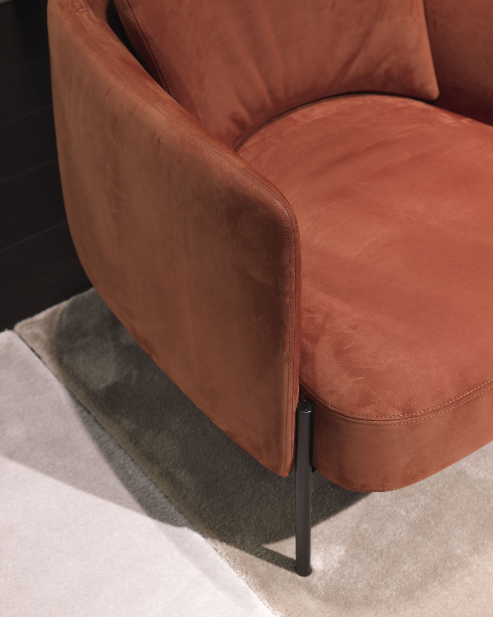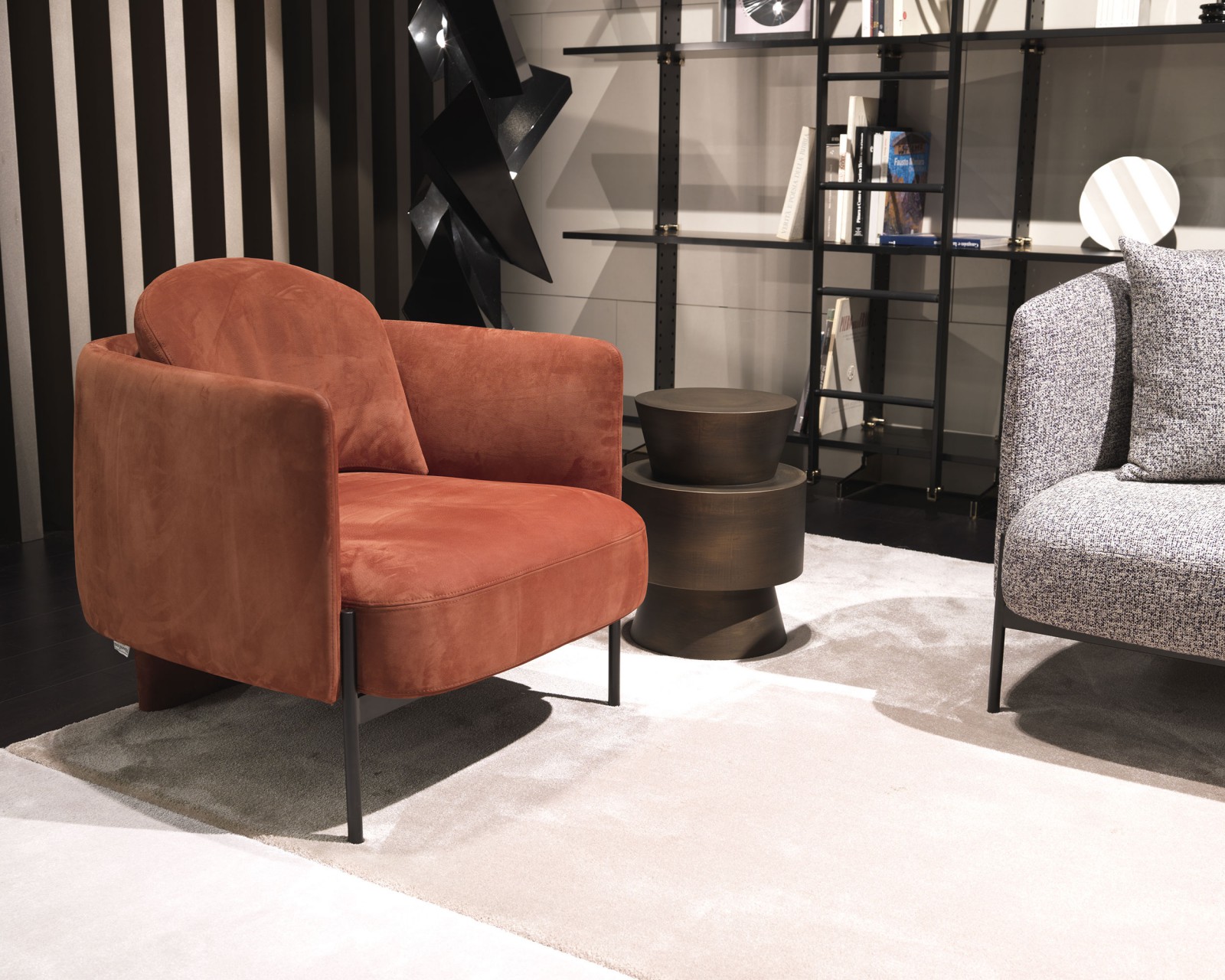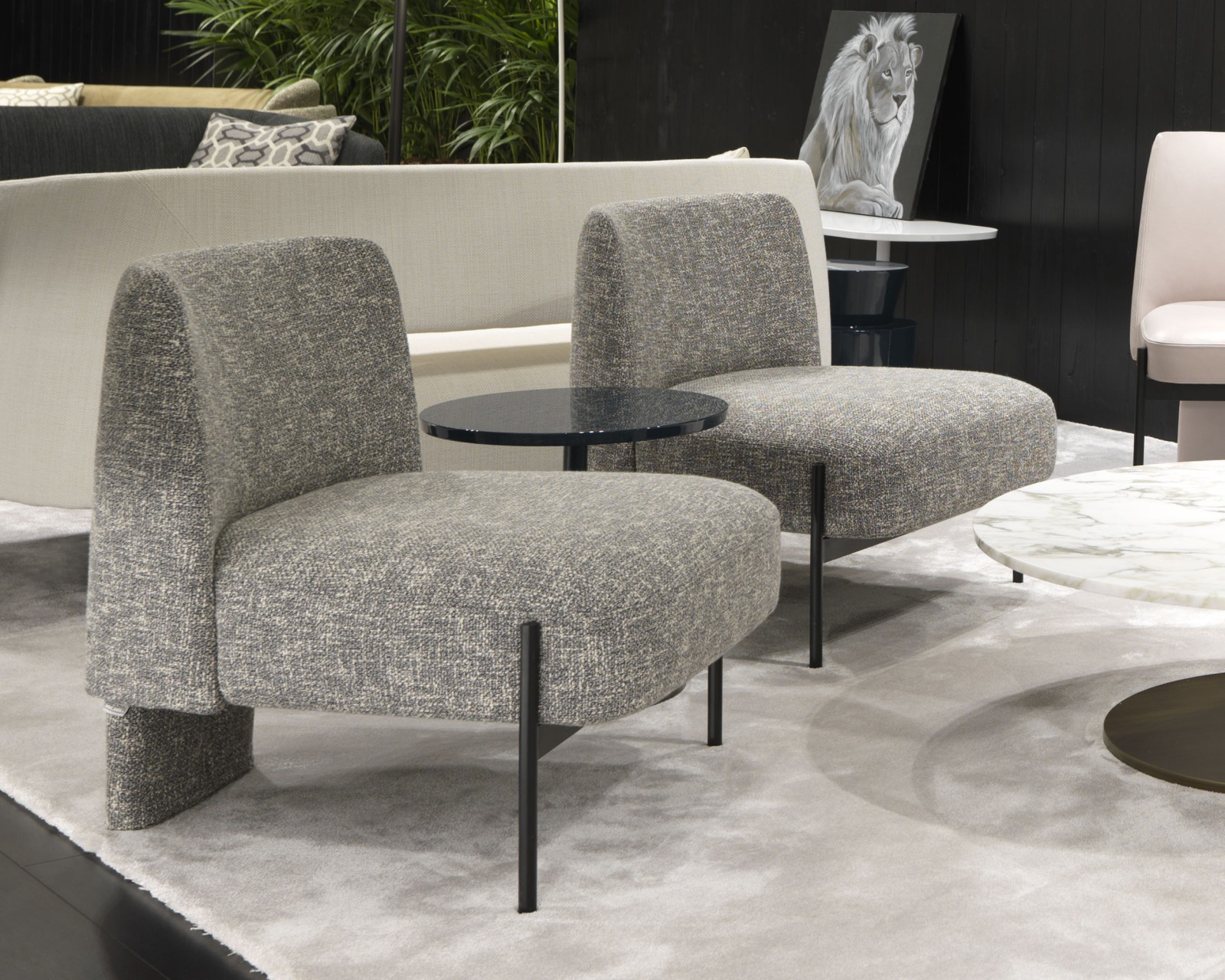 運用在正面纖細的金屬支腳與后背支持的支柱間,倍顯設計背后簡約卻不簡單的理念。