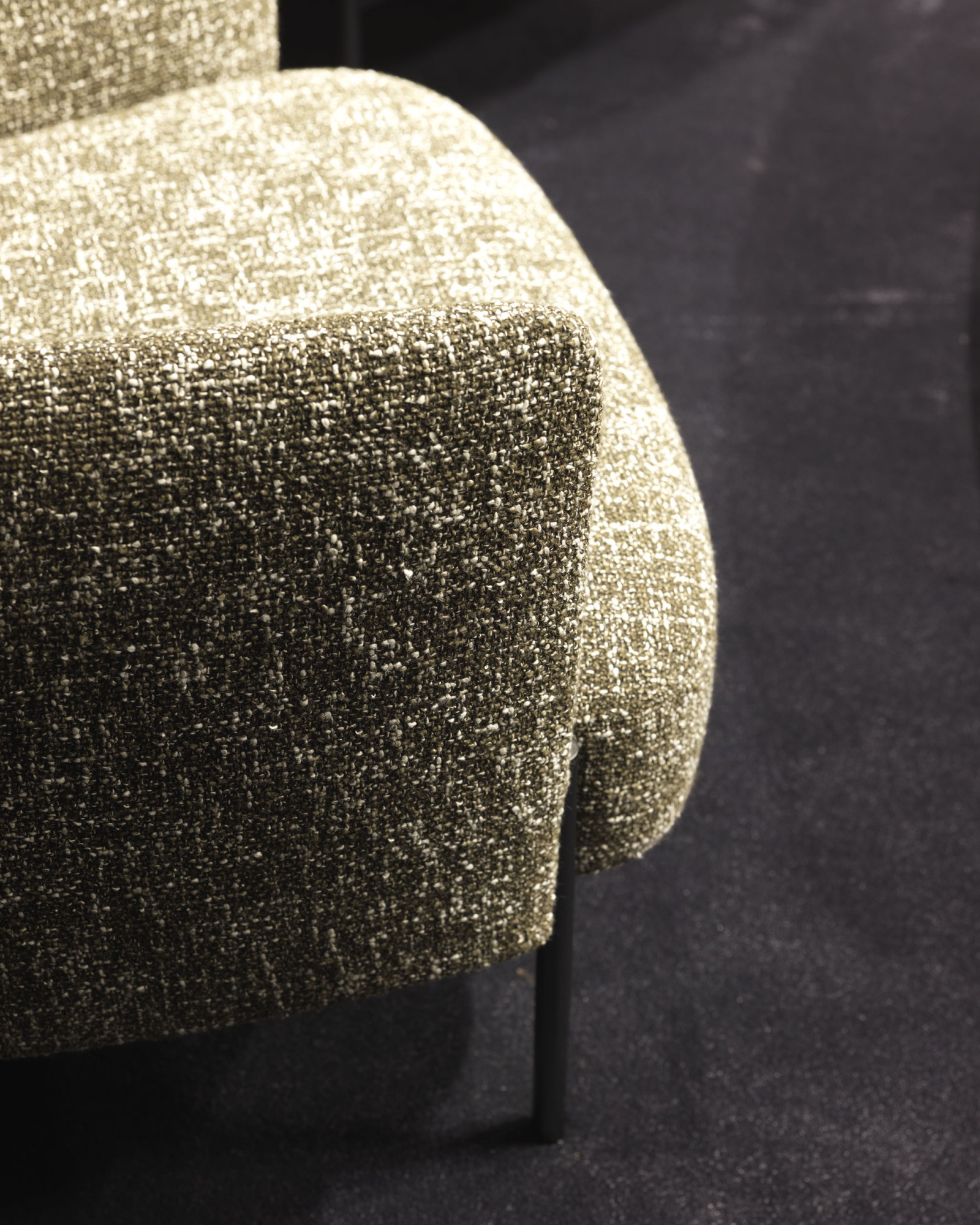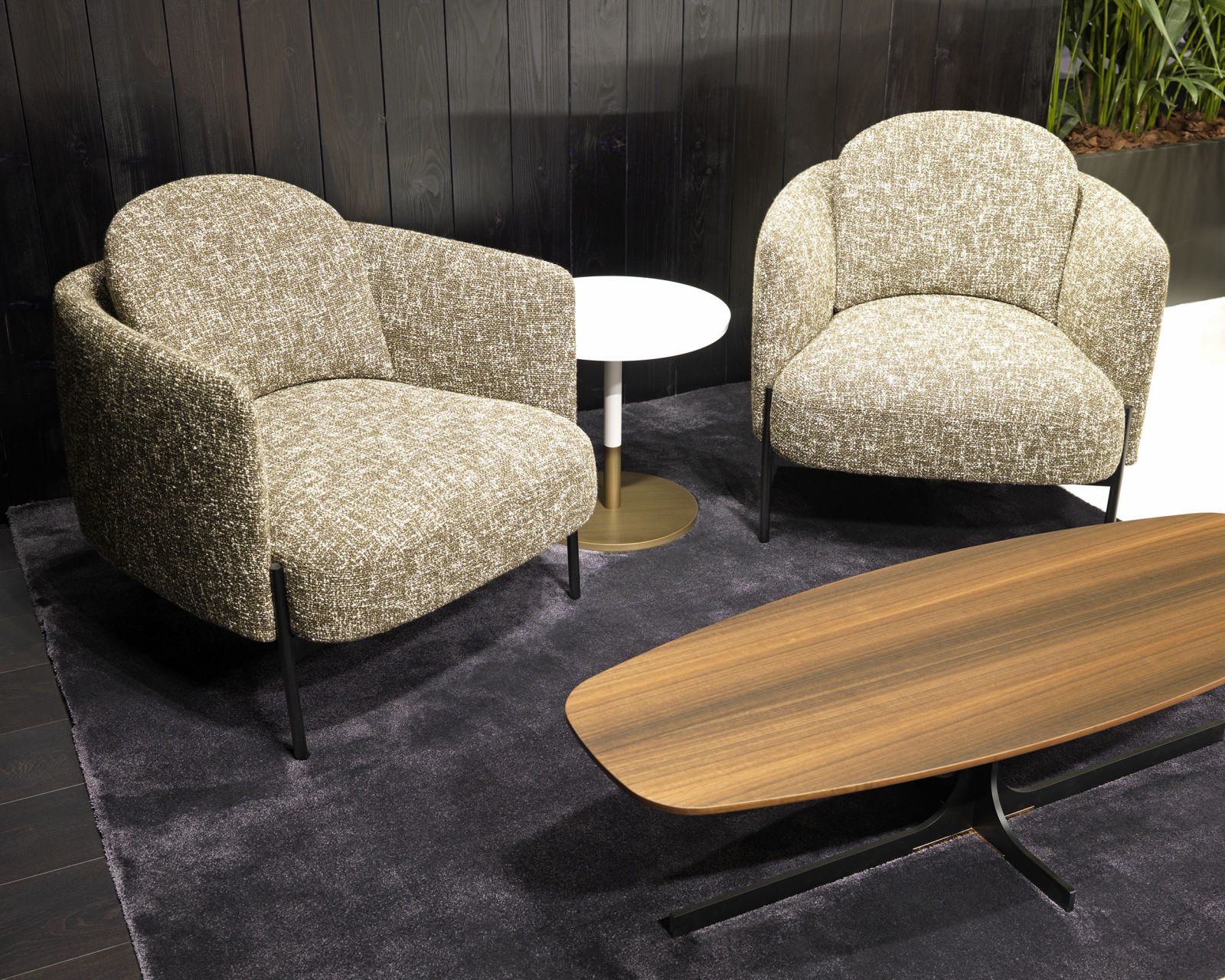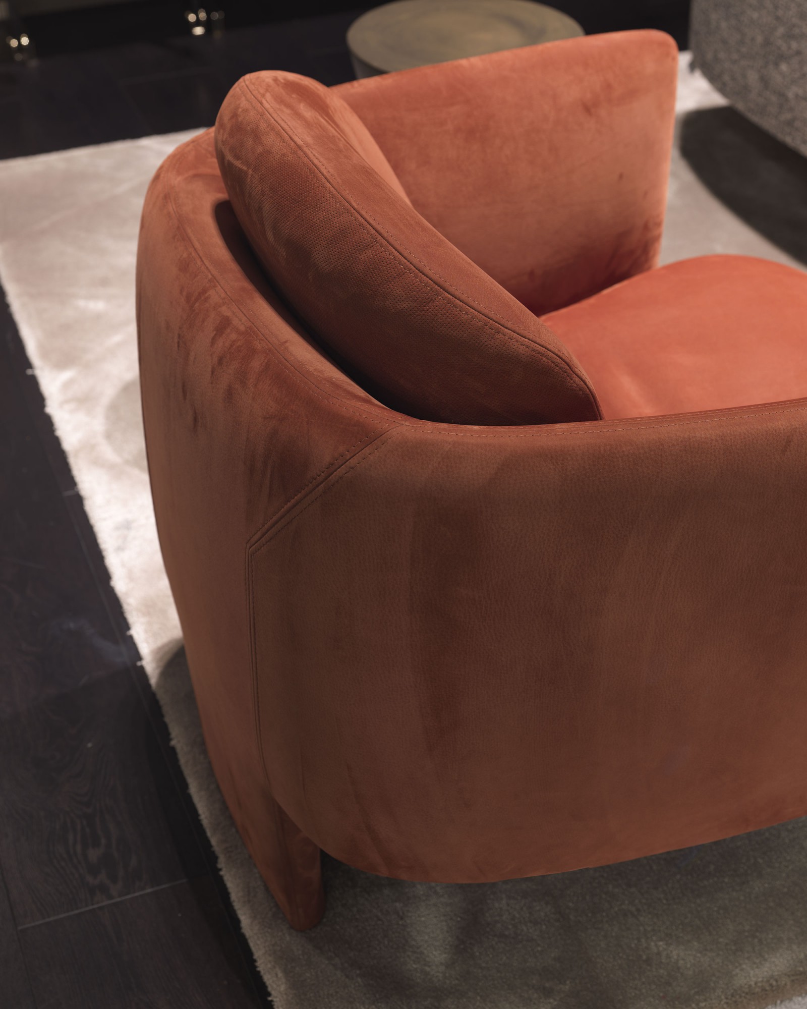 運用在正面纖細的金屬支腳與后背支持的支柱間,倍顯設計背后簡約卻不簡單的理念。