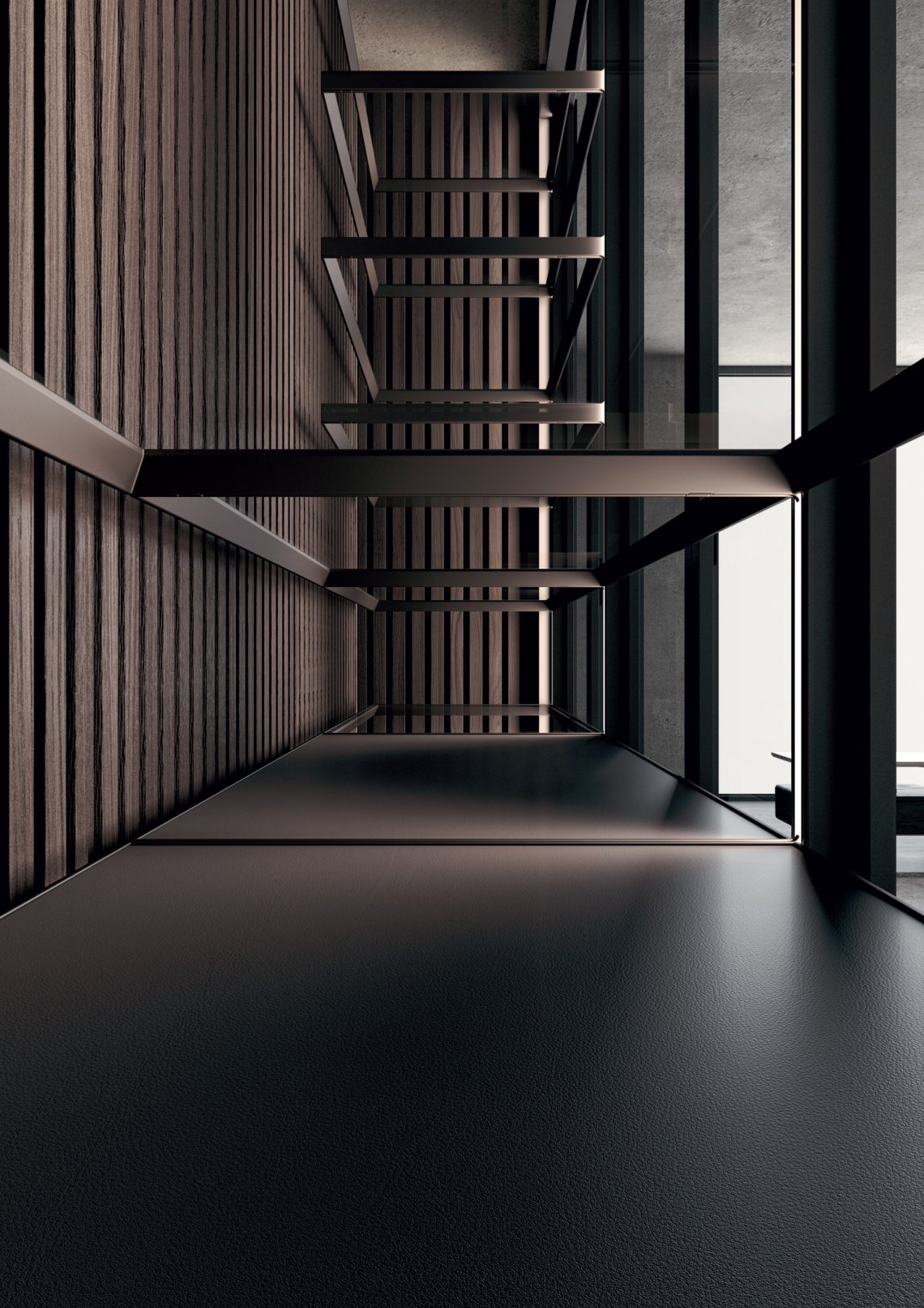 The product is compatible with all the doors already contained in the Palo Alto I-box system, and with the evolution of the Rex door, featuring an innovative opening mechanism, similar to a pantograph, that permits the movement of one or more pairs of doors from their closed position to total 180° opening, placed over the doors of the adjacent compartment. The result is the total opening of spaces of about two meters.