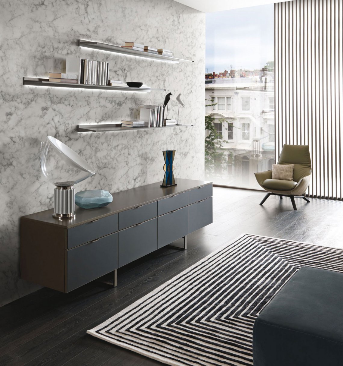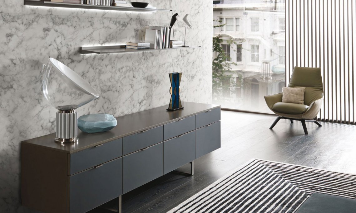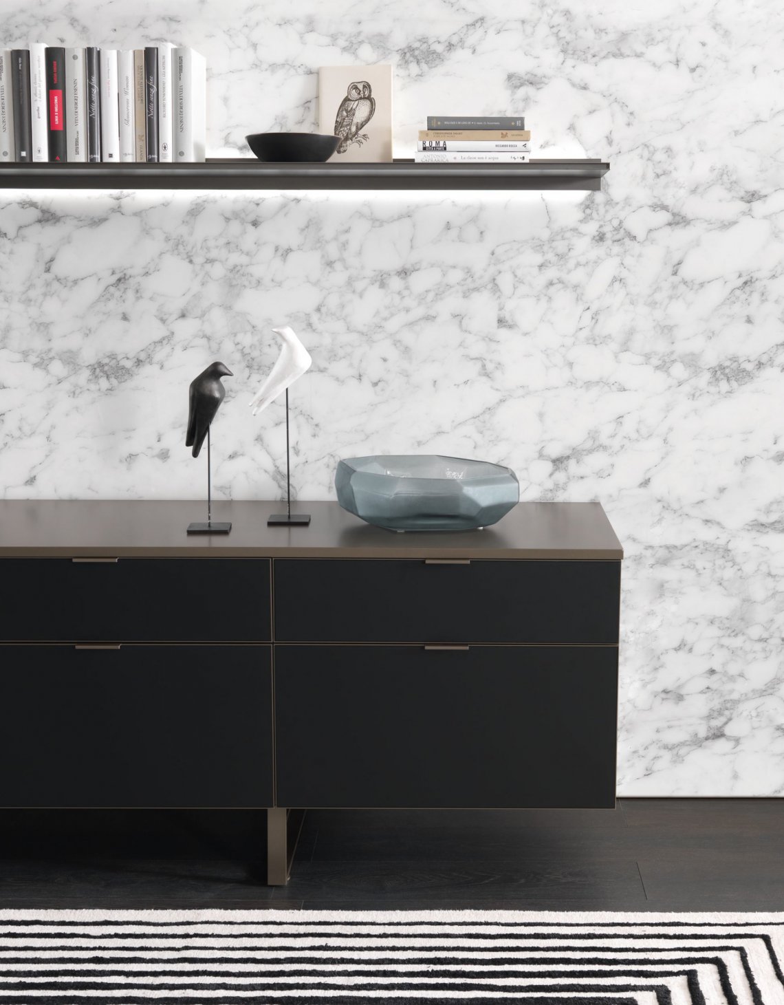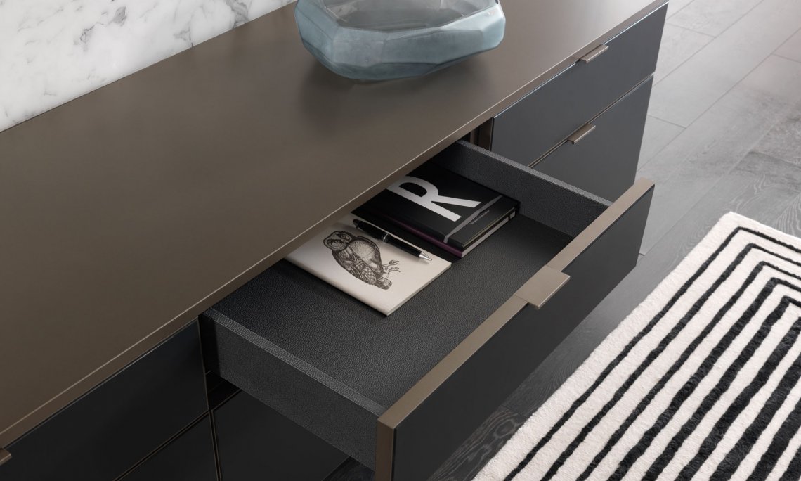 Plan的面板呈現真實的圖形感,四個滑動的共面門上的閃亮的鋁制把手戲劇性地引人注目,且把手設計及其實用觸感舒適。