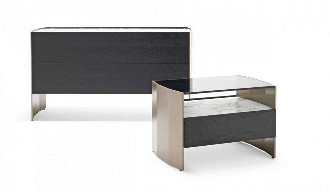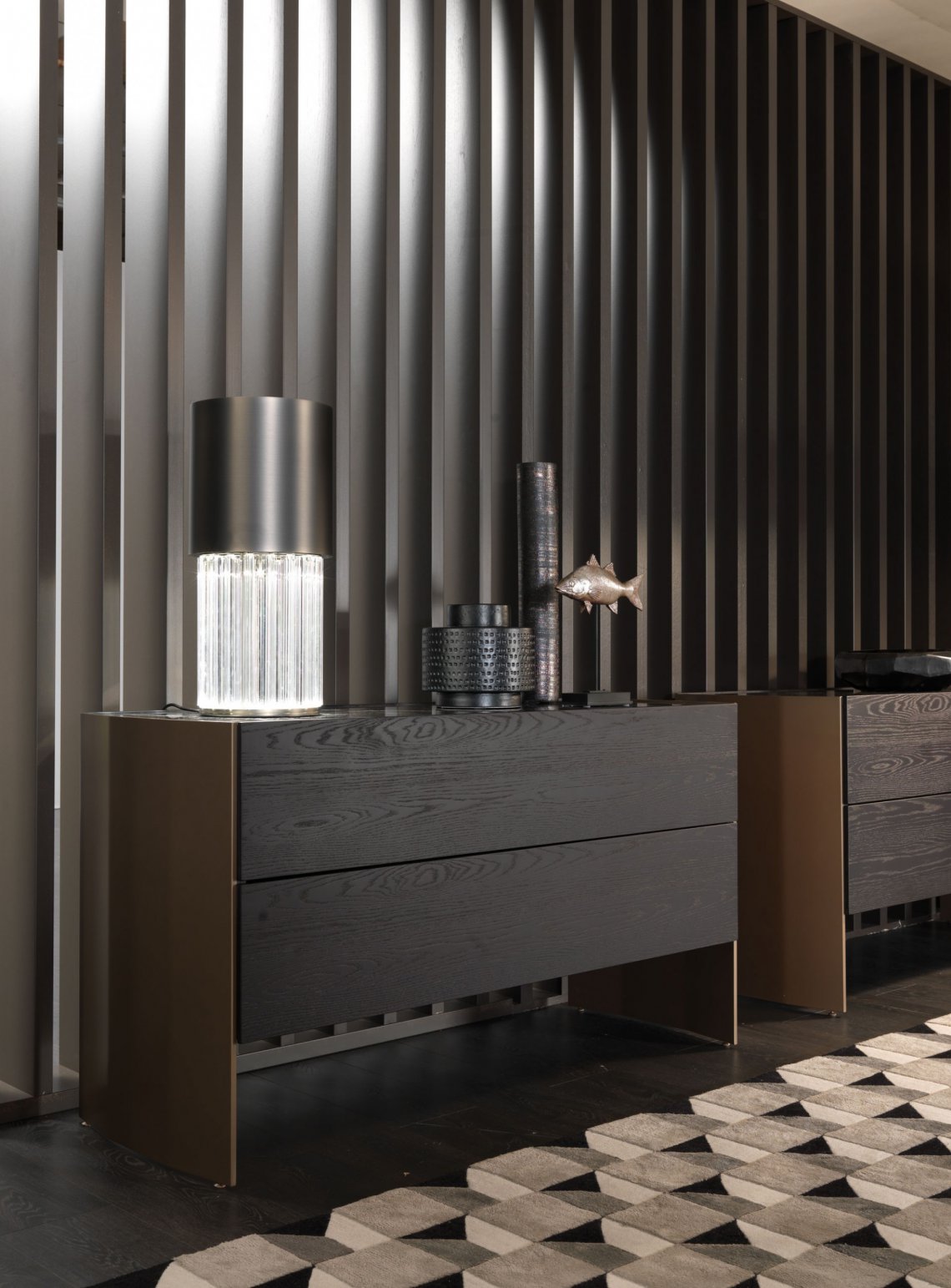 由兩種不同尺寸的床頭柜和一個邊柜組成MILVIAN適用于臥室區域,呈現高雅的風格。原始的橡木結構,結合如同建筑般延伸到地面支腳,凸顯出獨特精致的設計細節。多種飾面選擇,抽屜和隔層可進行雙面收納,實現美學與實用的雙重平衡。