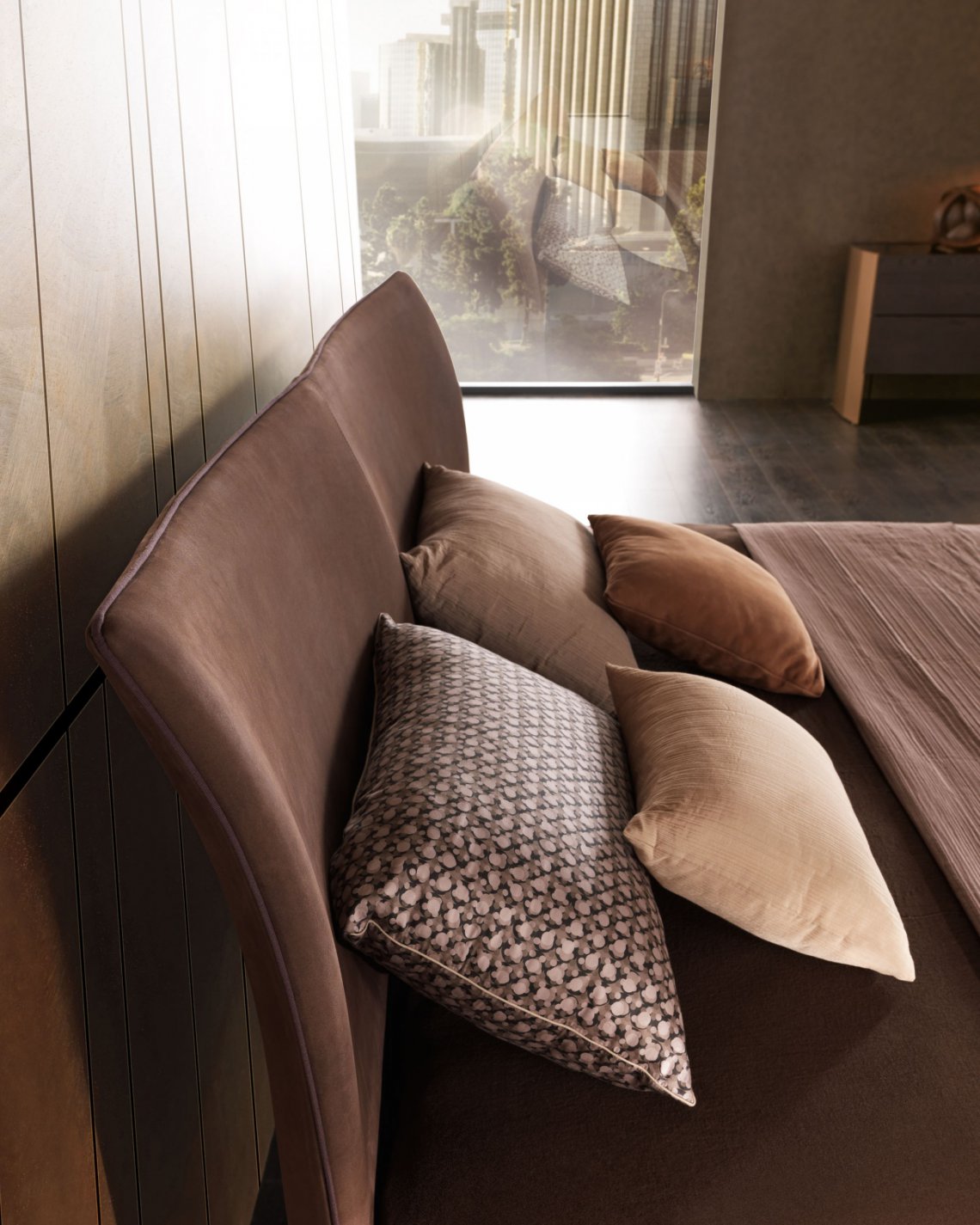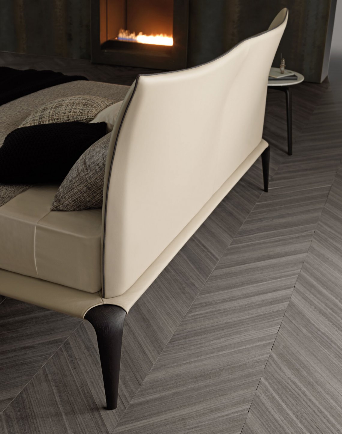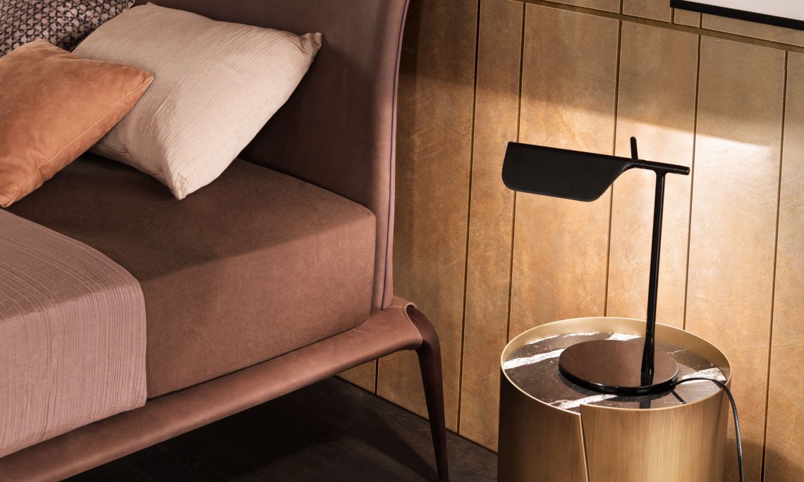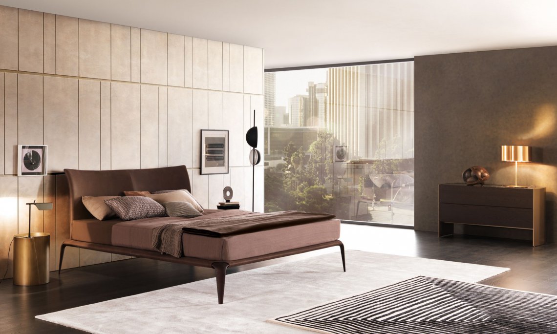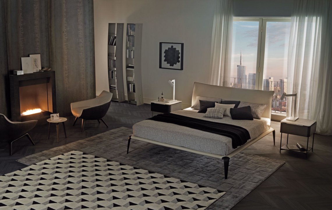Margareth 融和前沿技術材質,集優雅尊貴于一身。高級材料包裹鋼板床頭,以定制手工藝方式裝飾修邊。匠心獨運、細致無比。