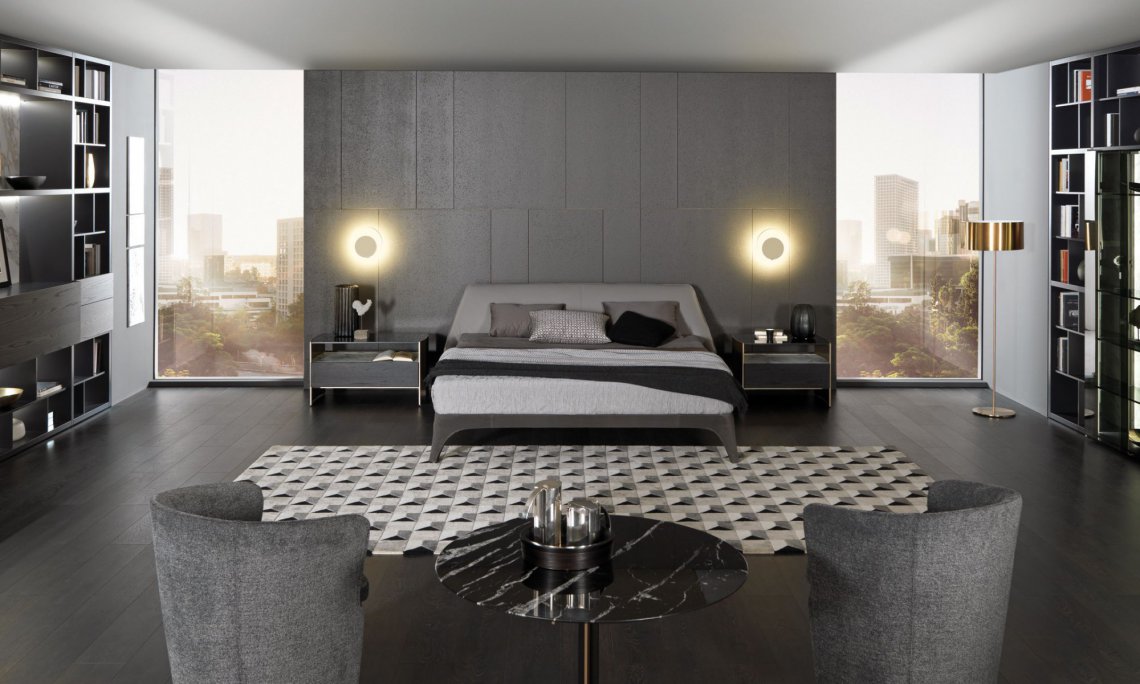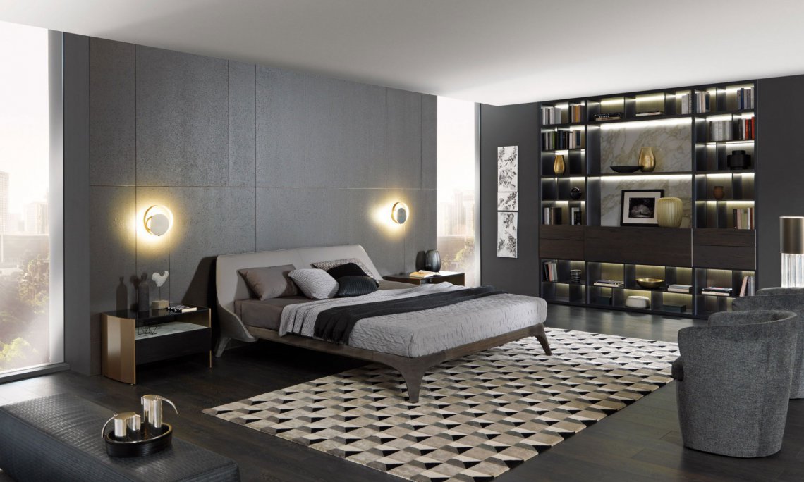 極富流線型的軟包床具,柔軟舒適,一見傾心。奪人眼球的彎曲狀床頭板,猶如沙發(fā)一般提供閱讀時(shí)的支撐,或使在休息時(shí)更能放松身心。結(jié)構(gòu)運(yùn)用冷噴涂的聚氨酯泡沫,裝飾面皮革材質(zhì)可以移除。
