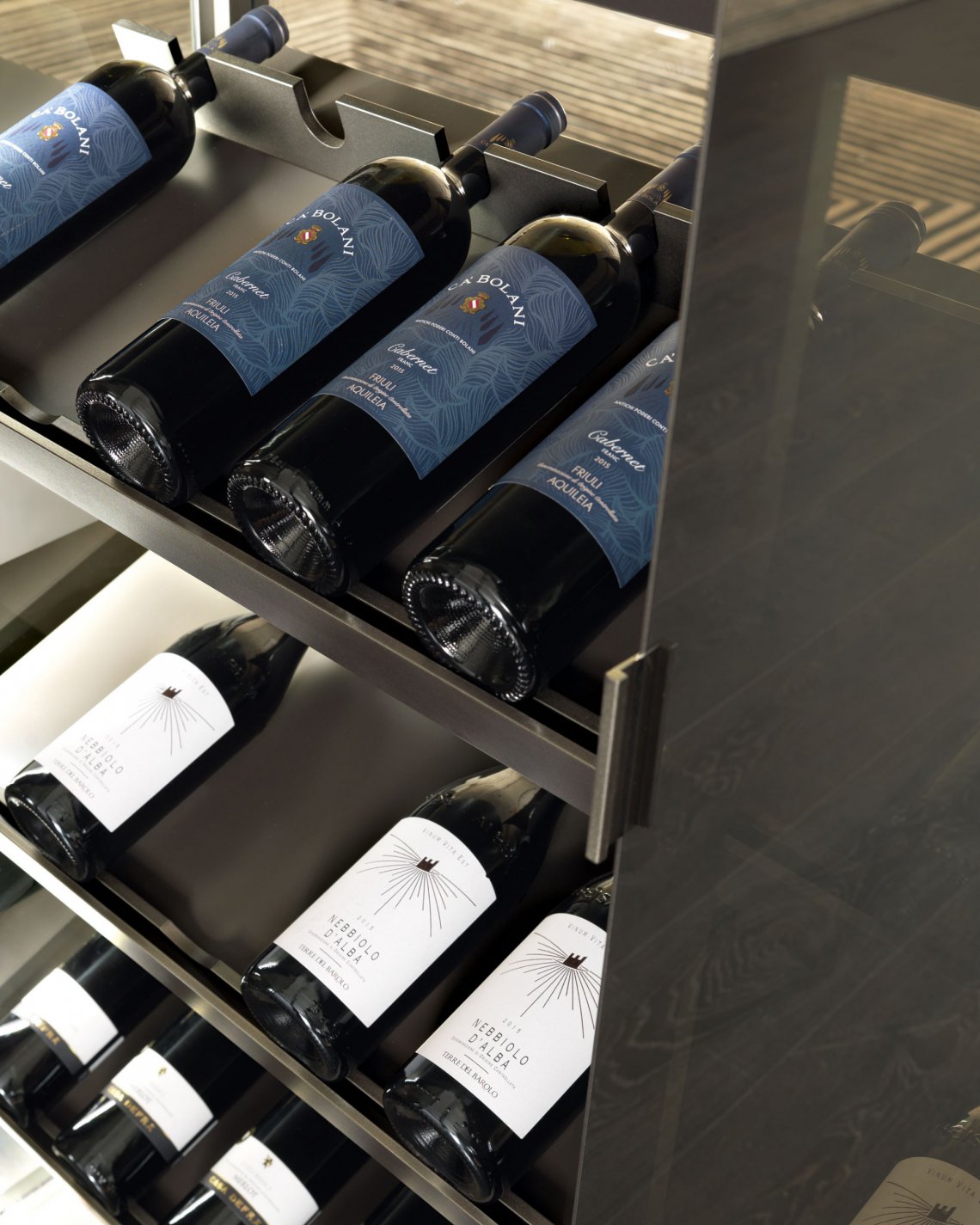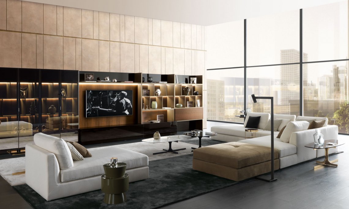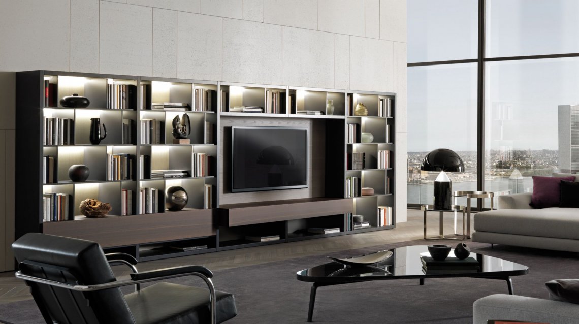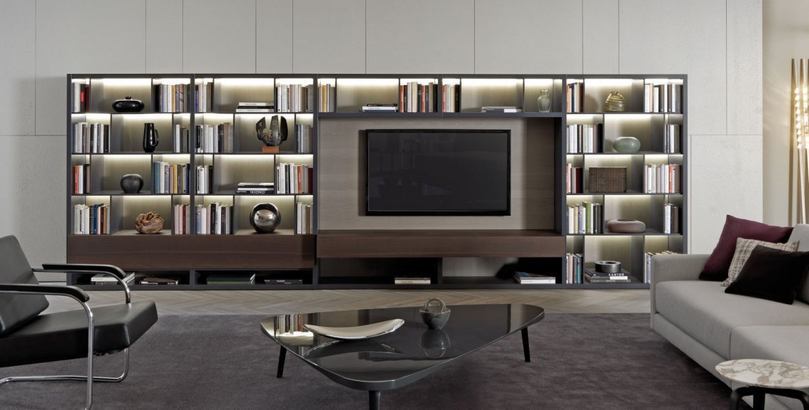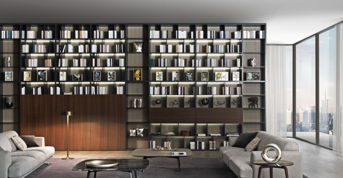 Crossing墻體系列巧妙融合多種不同的潮流元素,包含交替的層架,帶上、下翻門及三維立體玻璃門的吊柜,呈現通透明亮的視覺效果。柜體內部配置定制LED照明系統;鉸鏈門配置阻尼開關系統。集美感與功能設計于一體。真正的創新刷新了書箱的概念。它所組成的嵌板,重量輕,使書柜懸掛起來,賦予了一種全新的“可見明度”的感覺。