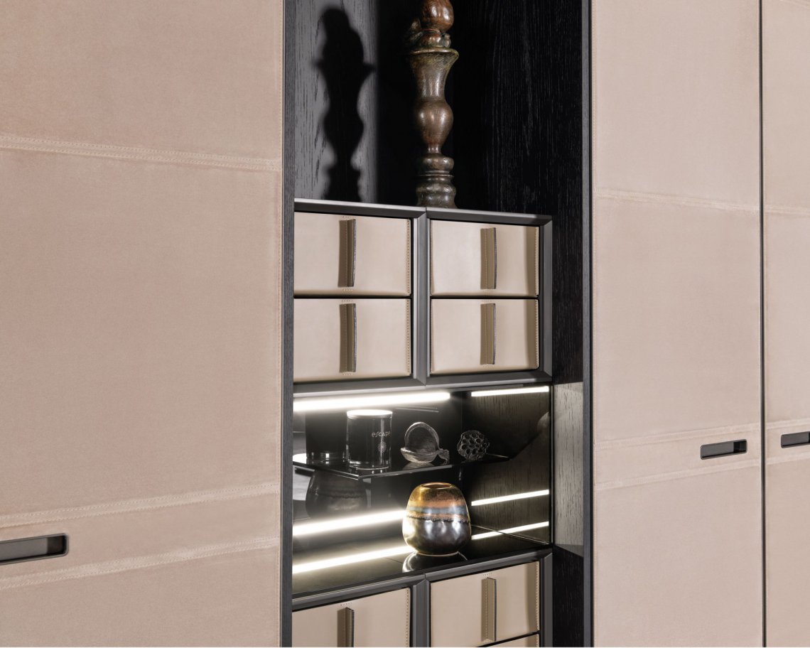 現代與傳統的完美結合,營造出靈動雅致的空間。精工的皮革走線巧妙結合內嵌把手設計,方形輪廓的布局外觀,彰顯意式時尚優雅風范。