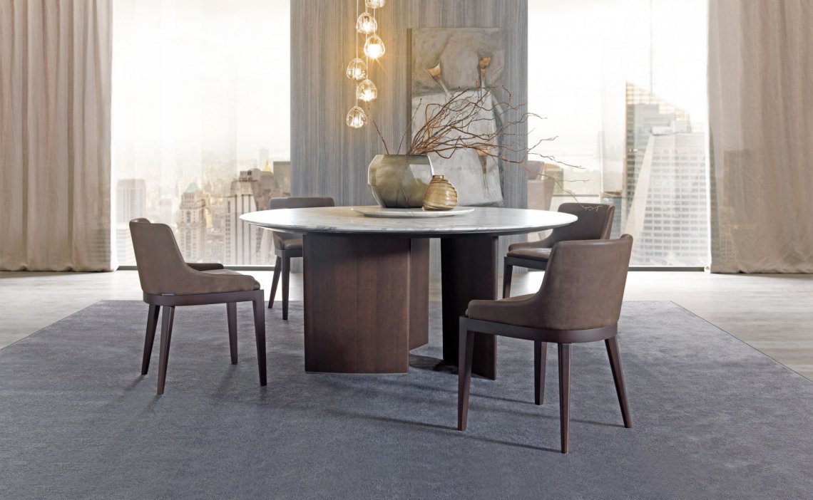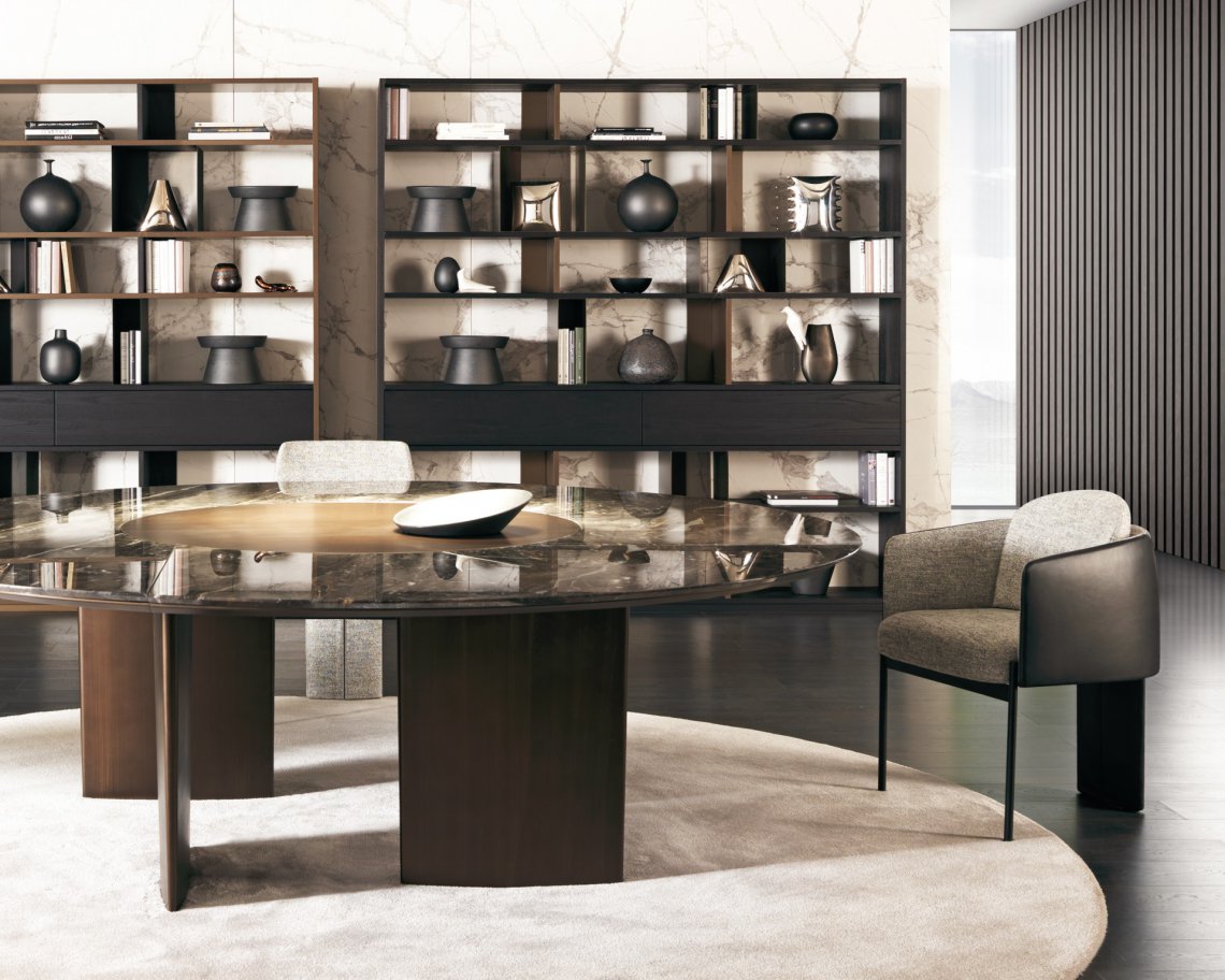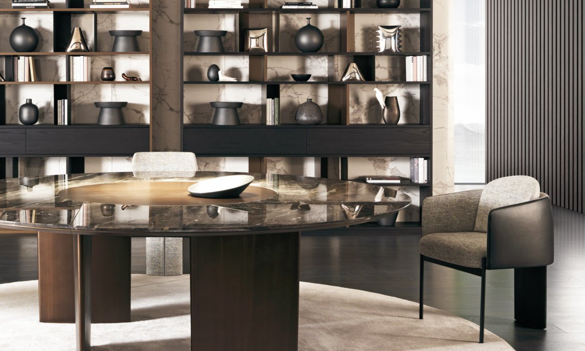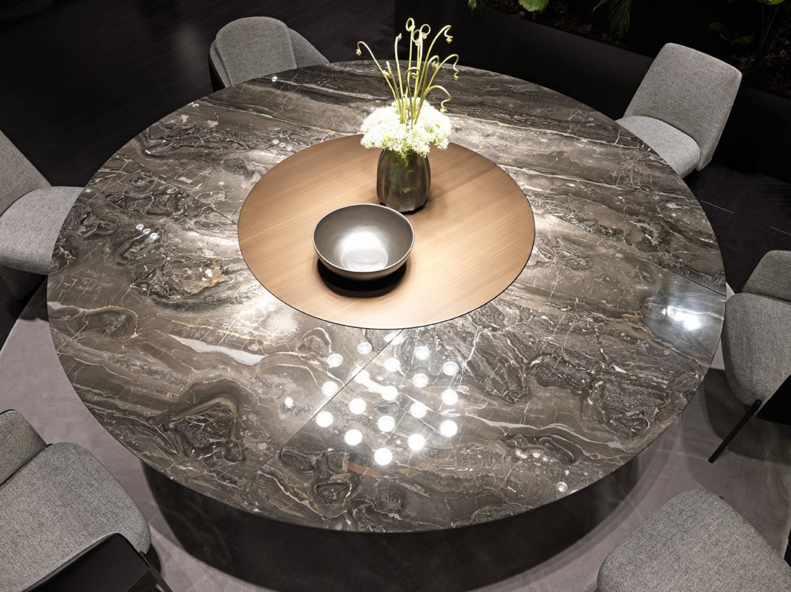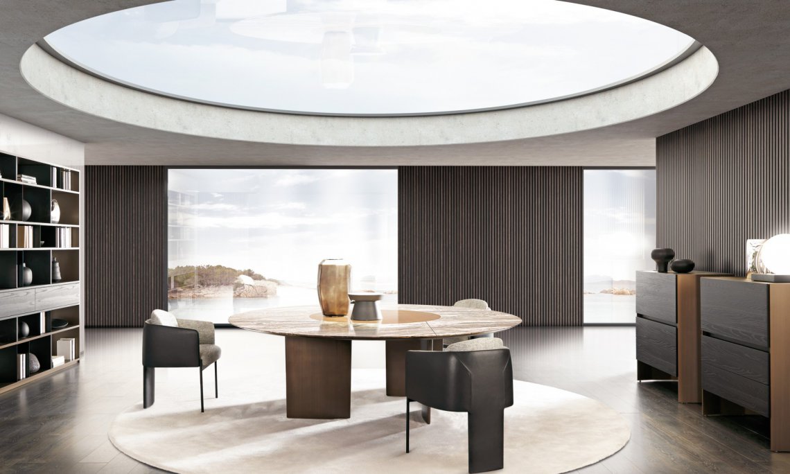 一張桌子,組合不同材料,同時也展示了一種當代科技。桌面的細薄修邊可減輕產品厚度的視覺感知,使其輕巧懸掛。撐腳部分讓人聯想起飛機的機翼,即是這個產品的靈感來源。