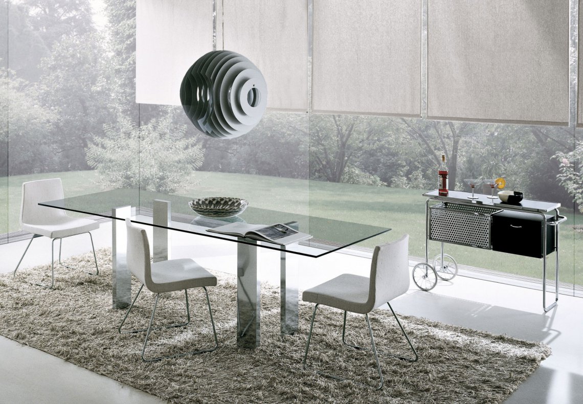 極具現實感和精致感的Taul似乎幾乎徘徊在太空中:精致的透明玻璃臺面,像摩天大樓一樣向上彎曲腿腳,支撐令人驚嘆的桌面(矩形,橢圓形,圓形或正方形版本),趣味的顯現意想不到的迷人非對稱性。