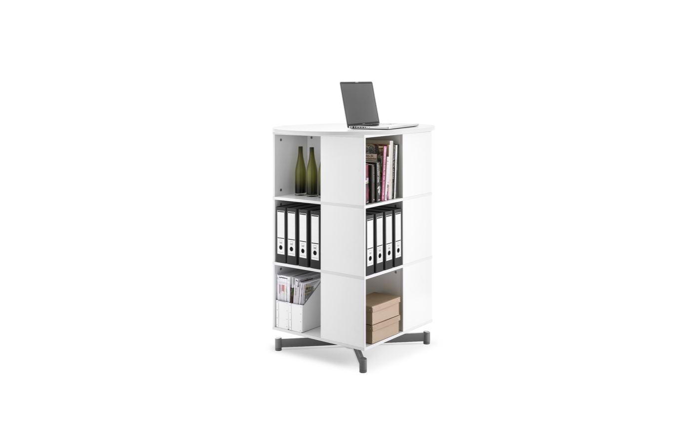 The economical alternative to conventional storage shelves is completely rotatable and especially suitable for compact storage and archiving of items that can be stored in a V shape. The Compactfile is designed to hold 24 folders per level.