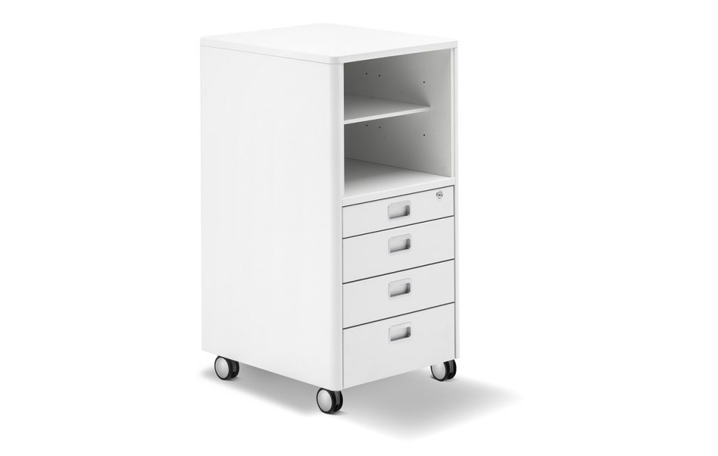 The larger alternative to Cubic offers an additional drawer and two more tray compartments. Cubicmax also has castors and comes with 8 different color applications for the handles. In addition to more storage space, it also offers the possibility of doing one or two activities while standing.