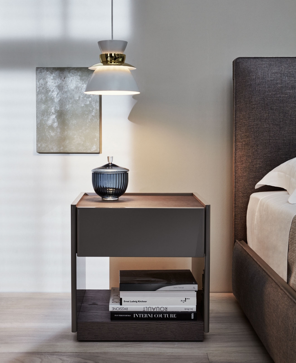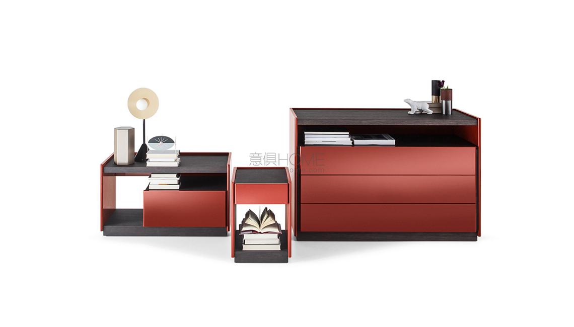 材料的實用及嚴謹的設計是5050這一系列的主要特征,這一臥室家具系列由 Rodolfo Dordoni設計而成。主要臺面采用啞光漆或亮光漆打造,抽屜則采用環保漆面,從而打造出不乏光澤感且富有活力的幾何設計。床頭柜及屜柜的整體結構采用圓角處理,更顯靈動。