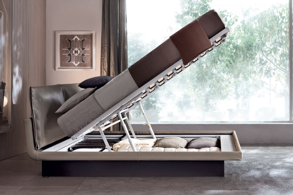 一個簡單而優雅的床,其特點在于織物或皮革的飾面,材料和剪裁工藝是一位最精致的“女設計師”的典型手法。Honey是一張線條現代,尺寸緊湊,設計用于不同臥室環境的軟床。床墊下的儲物箱帶有一個搖動裝置,用于輕松拿取物品,同時可以水平移動實現方便的鋪床。