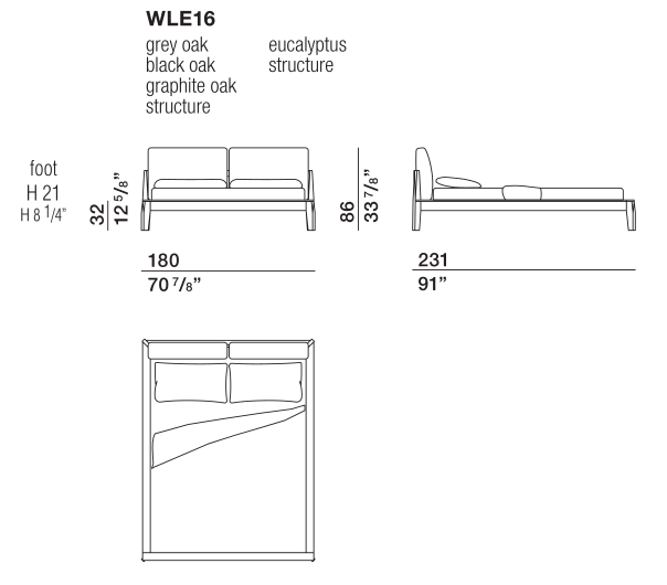 Wish是對木材的運用和對細節(jié)的關(guān)注,創(chuàng)造一個永恒的經(jīng)典的最好例子。線條極簡而精致,床頭帶有柔軟的織物或皮革靠枕,和木質(zhì)結(jié)構(gòu)結(jié)合的實木床。灰色或黑色橡木,淺或深榆木(內(nèi)部橡木染色)。桉木型號是由實木制成并貼木皮。