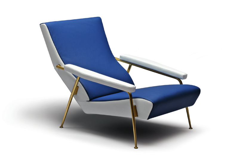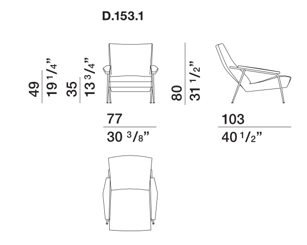 設計于1953,D.153.1扶手椅是Gio Ponti位于米蘭市Dezza大街的的私宅里家具的一部分。這個型號是由Molteni&C在ponti檔案館的原始圖紙基礎上的現代演繹。黃銅結構,由雙色皮革或“punteggiato”織物面料包裹,這款面料由Ponti于1934為Rubelli設計。面料重新詮釋了天鵝絨編織的古老技藝,使它能夠滿足當代對圖案花紋的需求,如具有不同漸變顏色的交錯磁盤狀花紋排列。在2012米蘭家具展上首發,D.153.1豐富了Gio Ponti的家具系列。