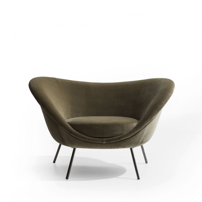 這張扶手椅最初是為一個接近Gio Ponti的內心世界的項目而設計,一棟位于 Caracas(1953-57)名為Planchart的收藏家名下的私人別墅。它是Gio Pon=產品系列的 一部分,這是由Molteni & C在Cerri&Associa=工作室的藝術指導下完成,建筑師在 這件作品上反映了他1952-53前往拉丁美洲時獲得的靈感。今天的扶手椅就像一個 舒適的殼,有一個硬質聚氨酯外框架、軟質聚氨酯內框架和座墊,可以在Molteni & C的面料系列進行選擇,并可以給三個組成部分選擇不同的面料。2016這把“愛 情椅”贏得了著名的Wallpaper設計大獎并成為Molteni & C的標志產品。