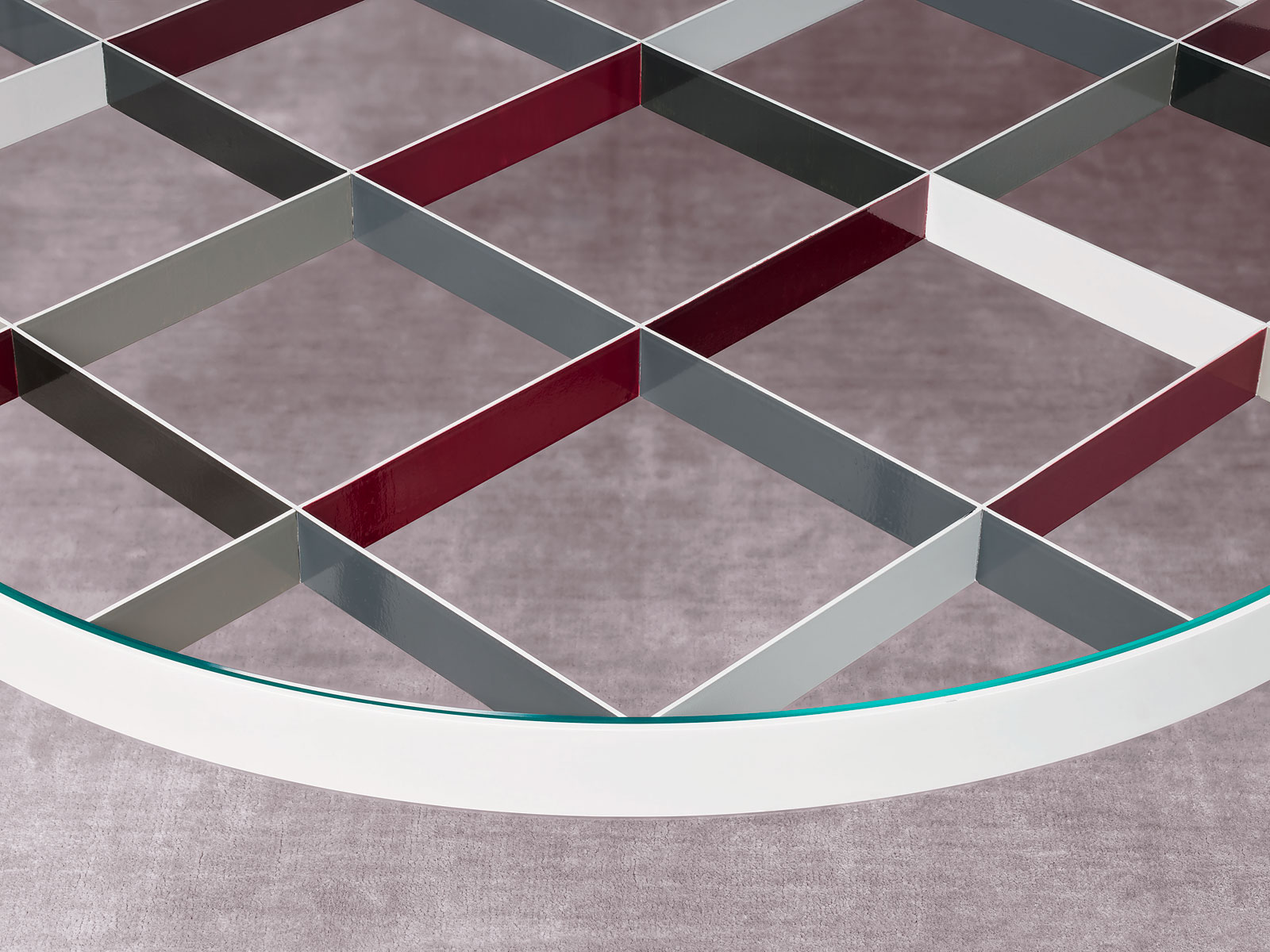 來自Gio Ponti位于米蘭Dezza大街的私宅, 設(shè)計于1954年-1955年的D.555.1茶幾由Molteni & C基于ponti檔案館的原始圖紙重新生產(chǎn)。它完善了Gio Ponti這位建筑師在1935年到1950年之間完成的家具產(chǎn)品系列。手繪上漆的金屬結(jié)構(gòu)及玻璃桌面。