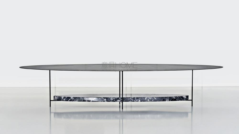 Panna Cotta是一張圓形或橢圓形的茶幾。外表既纖細又厚重,看似矛盾的運用大理石和金屬材料實現看似脆弱的穩定性。一張橢圓形或圓形的茶幾,輕微的搖擺讓人聯想起典型的意大利軟甜點,這也是它名字的由來。