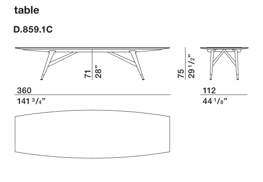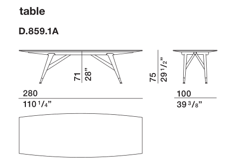 D.859.1桌子主要用作大型會(huì)議桌,最多可容納10個(gè)座位,在觀眾席的擺設(shè)中脫穎而出,不僅因其令人印象深刻的3.60米長的尺寸長,而且最重要的是其精致簡潔的設(shè)計(jì)。 梯形基底以其輕盈和現(xiàn)代風(fēng)格而著稱。一個(gè)真正的單跨式橋梁式結(jié)構(gòu),其上放置一個(gè)錐形的支架,突出其空氣動(dòng)力學(xué)。原始版本中實(shí)木支架末端采用黃銅制成,此次設(shè)計(jì)中可選擇原始版本也可選擇深色實(shí)木如黑色實(shí)木制成。