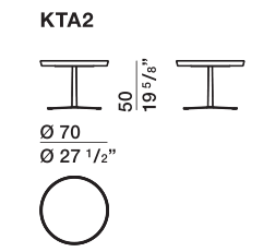 小桌有兩種規格,直徑50和70厘米,高度50和63厘米,可以部分重疊擺放。