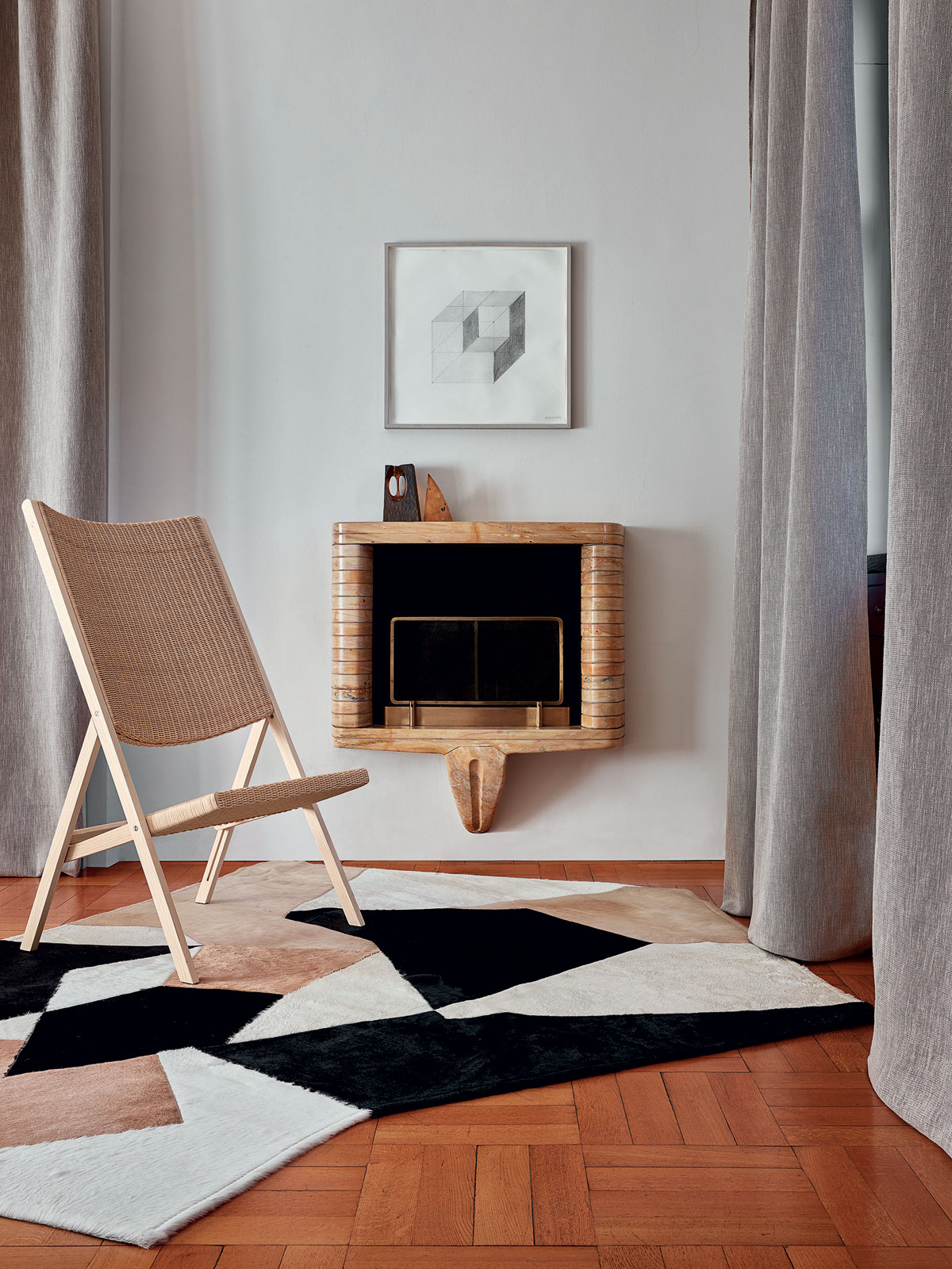 地毯設計于1954。 用幾種顏色的小馬皮混搭制成。它豐富了Gio Ponti產品系列。