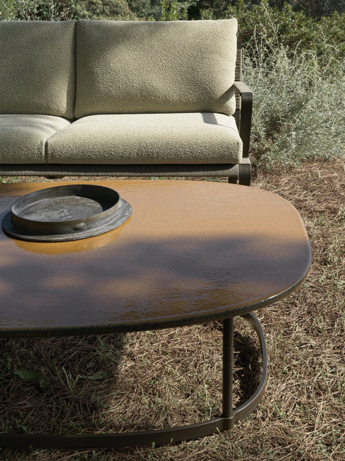 The sofa is available in two versions, also with two cushions, with widths of 150 and 180 cm. The use of aluminium, which weighs significantly less than iron, allows for easy movement of generously sized furniture. The easy movement and reconfiguration of elements is an inherent feature of outdoor furniture.
