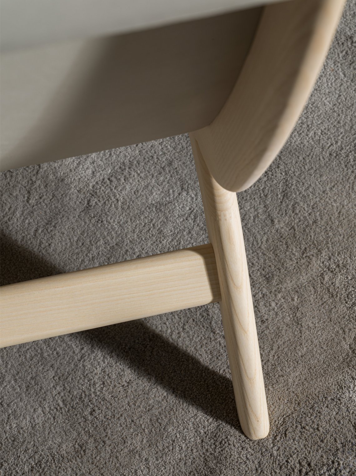 Supported by an elegant Black Ash, Eucalyptus or Sunrise Oak frame, Yoell reflects the distinctive feature of the deckchair, designed for relaxing in patios, living spaces and terraces blessed with a tropical climate. In his version, Vincent van Duysen underlines the difference with the systems of the original chairs, featuring textiles or straw with freedom of movement, by designing a brand new element.