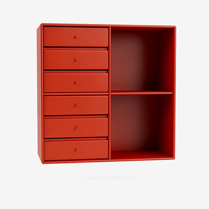 1623 架子有六個抽屜和兩個大型開放式隔間。該模塊提供了封閉式存儲空間和開放式隔間的實用且迷人的組合。開放空間非常適合展示您最喜歡的書籍、最美麗的花瓶或漂亮的碗。抽屜給人一種觸覺上的享受,因為它們可以輕松滑開,露出寬敞的內部空間。該架子有 Montana 專門開發的 40 種環保漆色可供選擇。這一標志性設計為家中幾乎所有房間增添了實用性和多功能性。該擱板可單獨使用,也可與 Montana 擱架系統的其他模塊結合使用。1623 擱板深度有 30、38 和 46.8 厘米可供選擇,并配有涂漆手柄。
