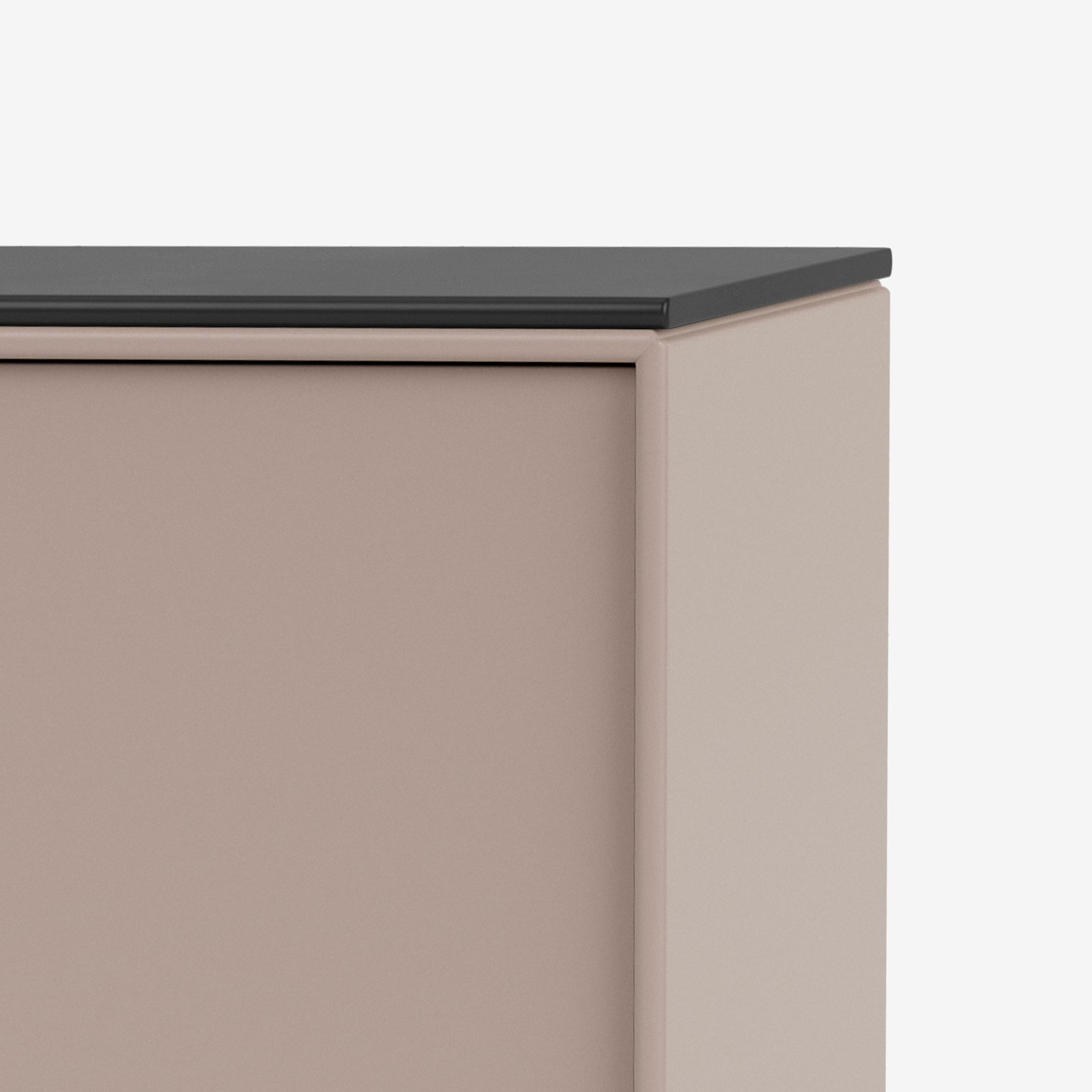 這款適用于 Montana 系統的矩形頂板寬度為 174.9 厘米,深度有 30、38 和 46 厘米可供選擇。頂板由 12 毫米 MDF 水性漆制成,具有圓形前邊緣和后邊緣以及直端邊緣,以便兩個頂板對齊。當頂板必須覆蓋多個單元時,每單元額外計算 1 毫米。蒙大拿州 40 種水性漆顏色可供選擇。在模塊和頂部面板上組合兩種不同的顏色以獲得更大膽的外觀,或者通過將模塊和頂部面板組合為相同顏色來創建更平靜的外觀。