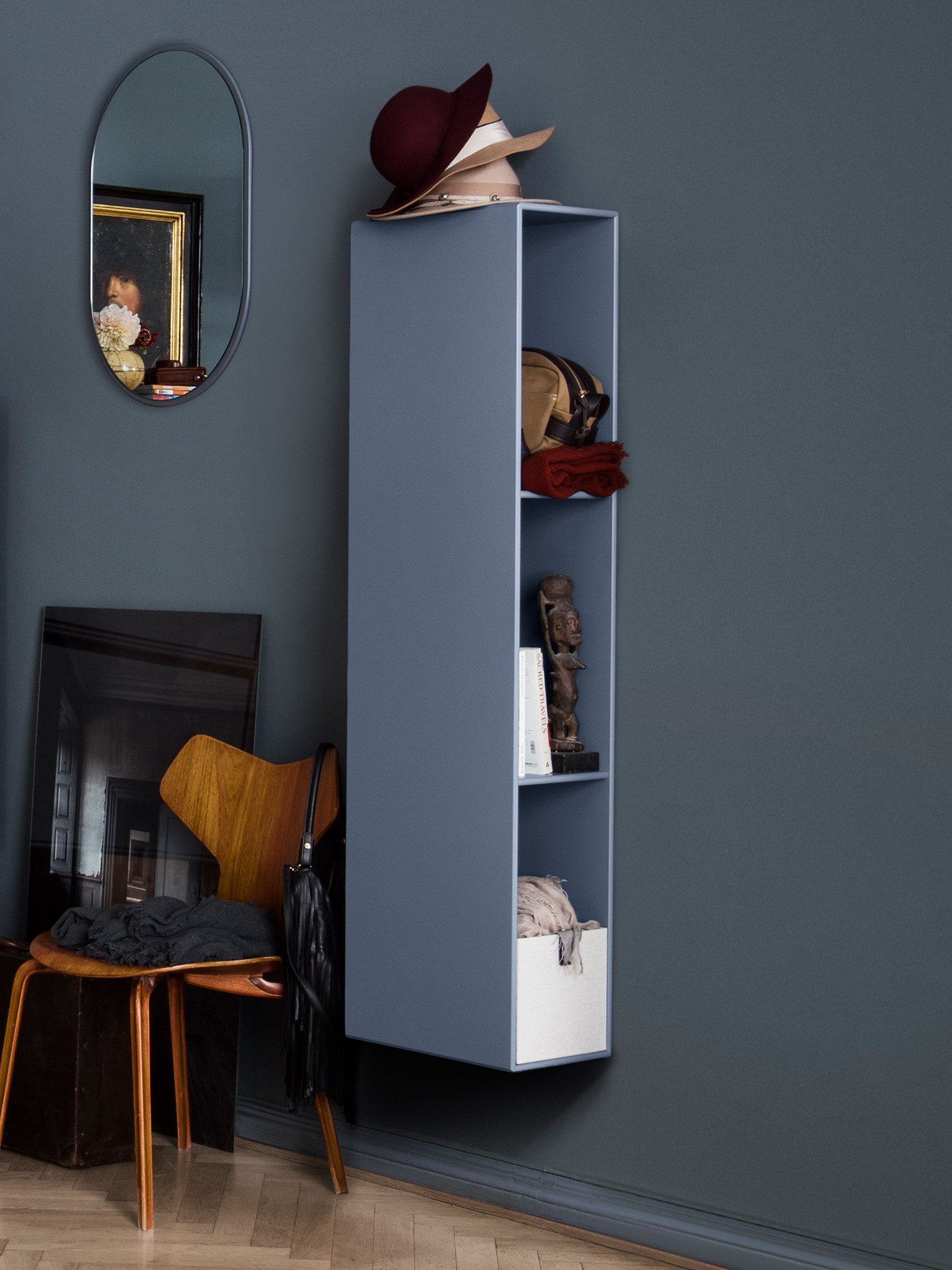 Montana Hall系列的三層側掛擱板是專門為入口設計的狹長擱板。擱板右側有一個懸掛導軌,可帶鏡子或不帶鏡子。添加蒙大拿州儲物箱,以跟蹤手套、連指手套、圍巾和其他需要在入口處存放空間的物品。擱板有 Montana 40 種水性漆顏色可供選擇。如果您想要更多存儲空間,也可以選擇五個擱板。