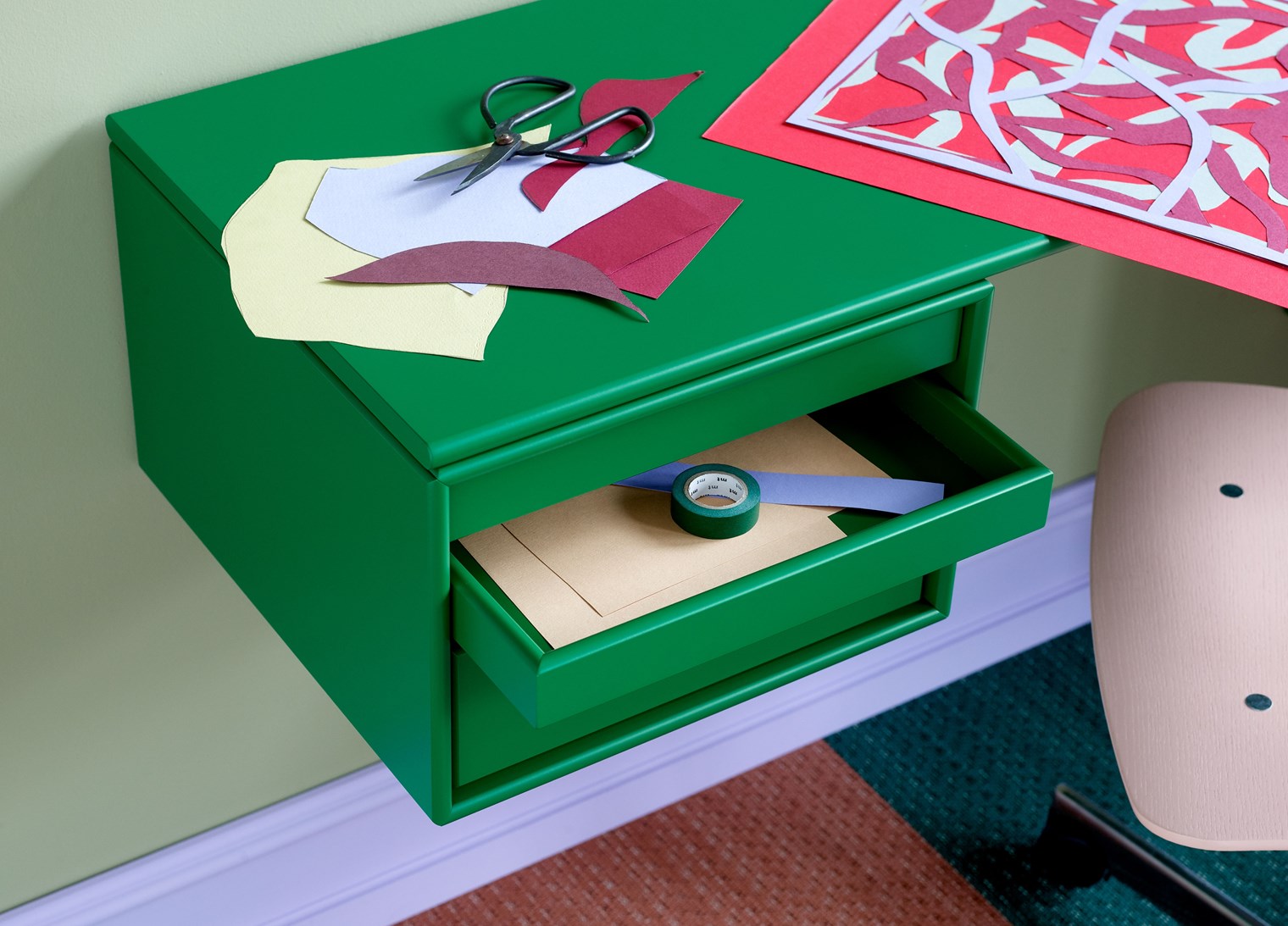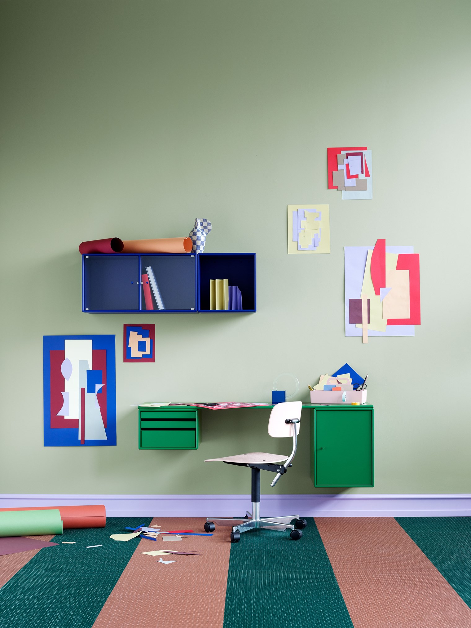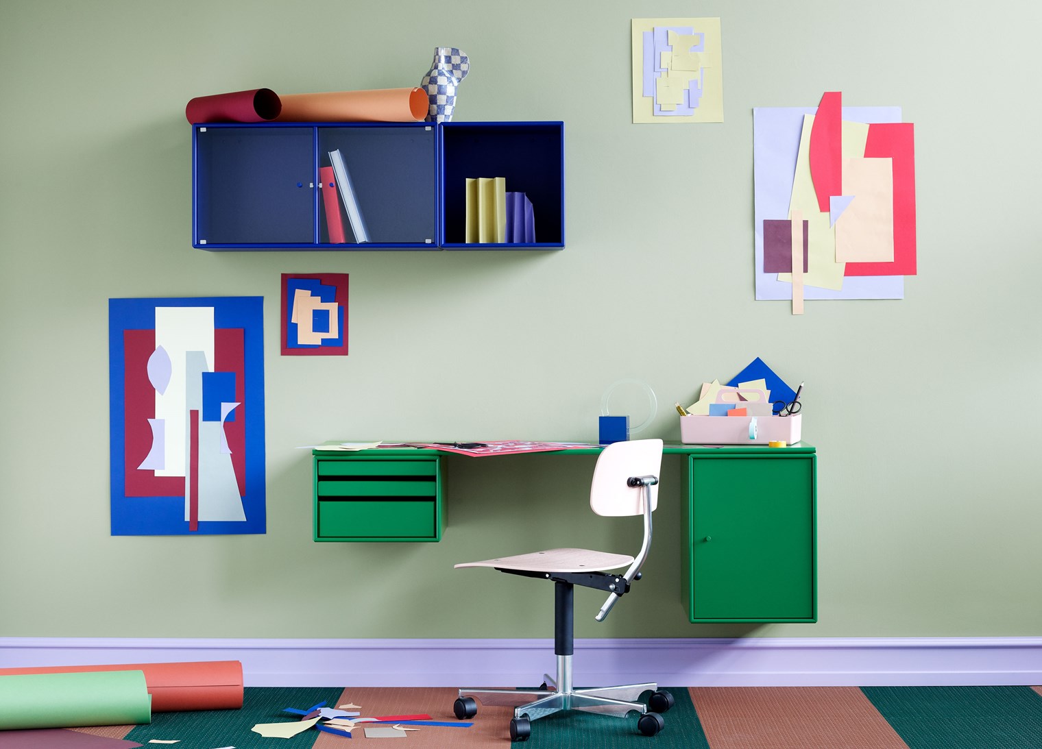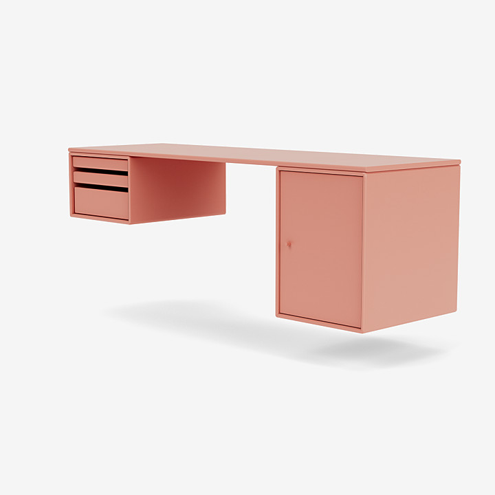 WORKSHOP 是一款適合家庭辦公室的長方形辦公桌,頂部面板下方兩側的兩個存儲模塊之間有腿部空間。WORKSHOP 的一側有托盤模塊,可以從模塊上完全拆除。另一側是一個較小的柜子,用于存放書籍或辦公用品。