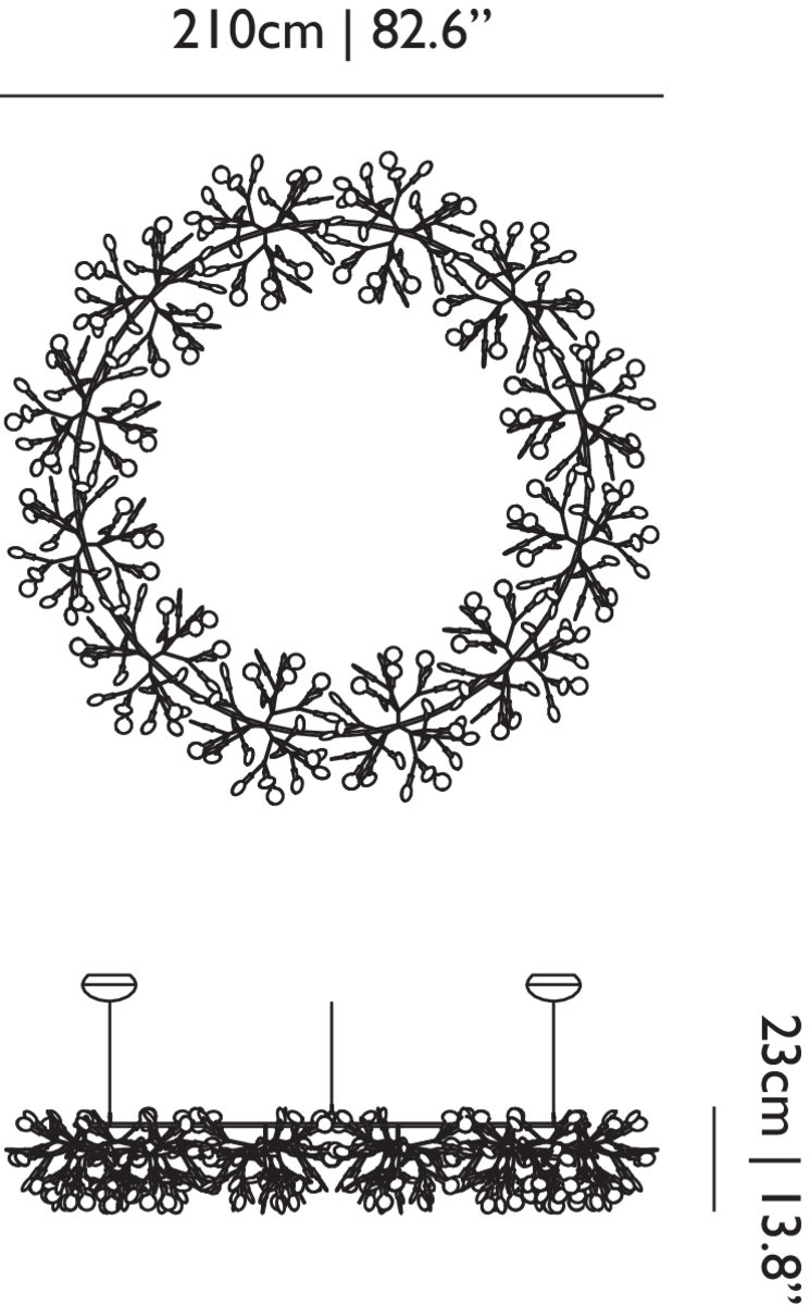 Heracleum’s festive foliage crown turns into a more intimate embrace. Its joyful glow of merry branches is a glorious feast for the eyes. With its more modest diameter, its sparkling beauty may decorate all kind of interior environments, big and small.
