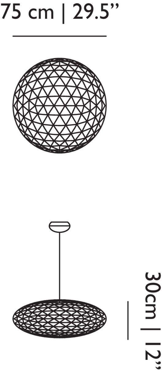 The Raimond light is a perfect sphere of mathematical ingredients punctuated by tiny LED lights. The Raimond is specially detailed to spread warm white light in every direction. Looking at the light feels like staring into the soft glow of a starry night. The Raimond Zafu creates an extra-terrestrial effect with its elliptical shape and tiny LED-lights. Like its spherical family members, the Raimond Zafu is made from the same elegant metal strips and mathematical ingredients.