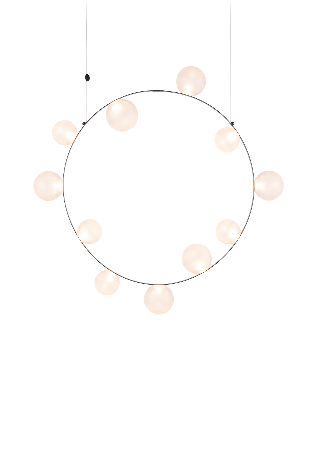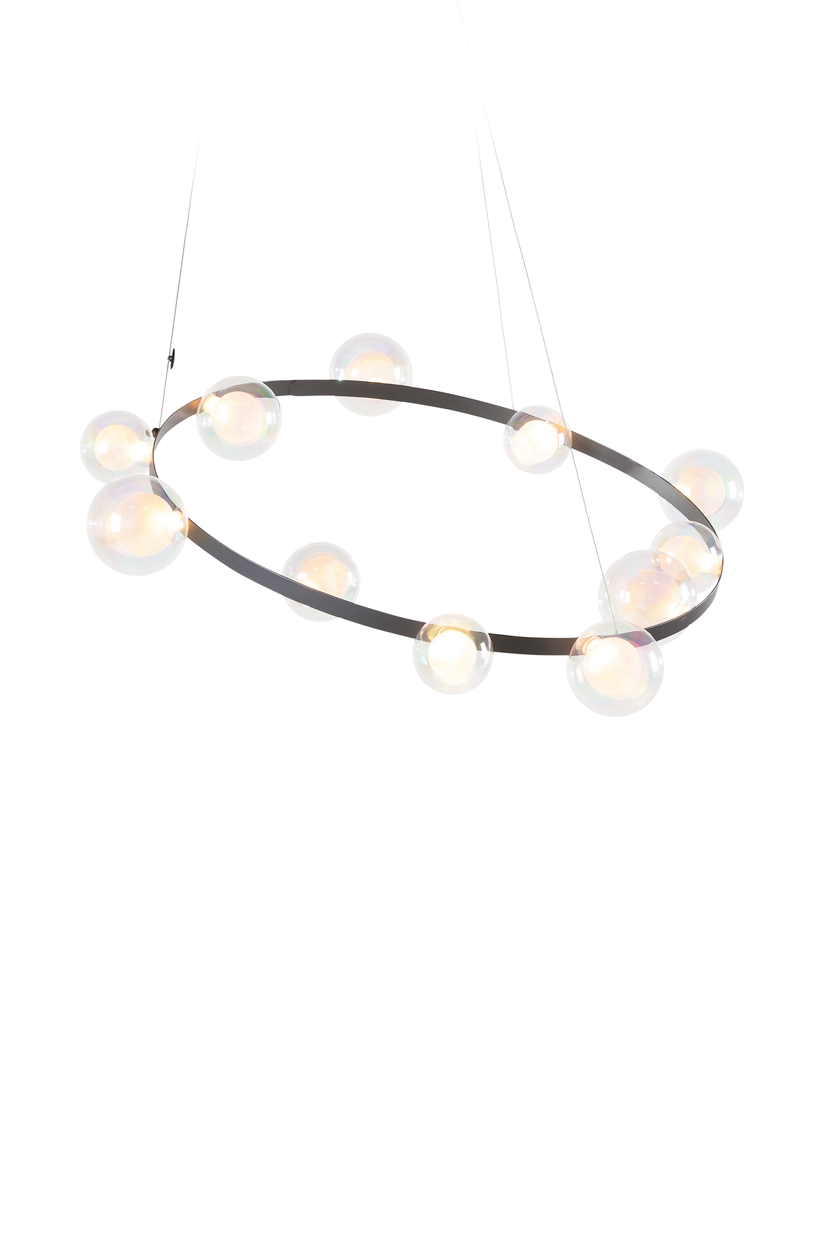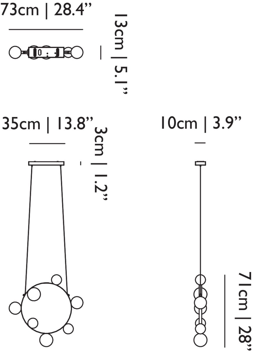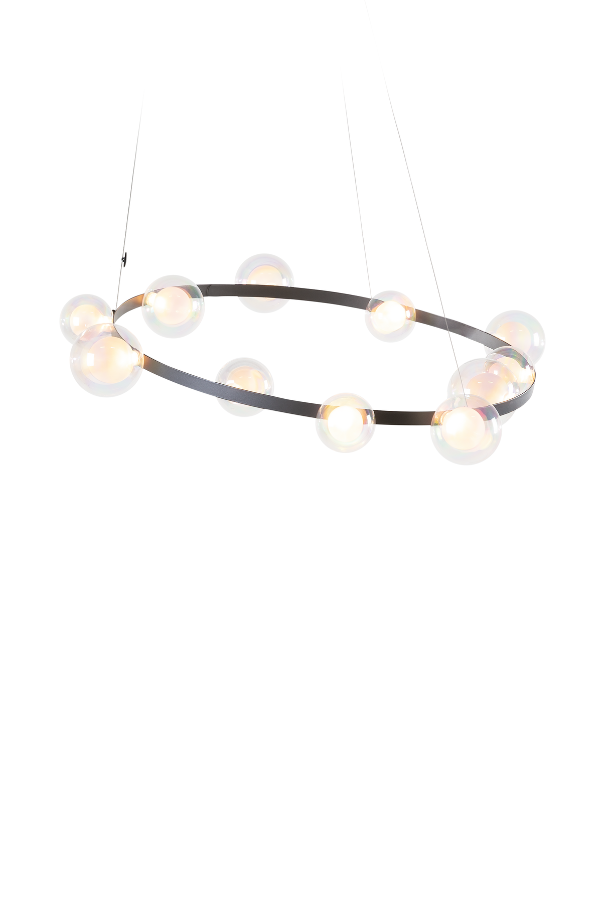 Hubble Bubble, designed by Marcel Wanders, takes you back to the freedom of blowing bubbles and running barefoot in the open air. Evoke a moment in which a frisky spirit is set free, only to find its way back home with an everlasting memory. These recollections are symbolized in each element of the Hubble Bubble. The glass bubbles are vailable in oil-iridescent and frosted versions and the Hubble Bubble can be hung both horizontally and vertically. Freedom is in the air…