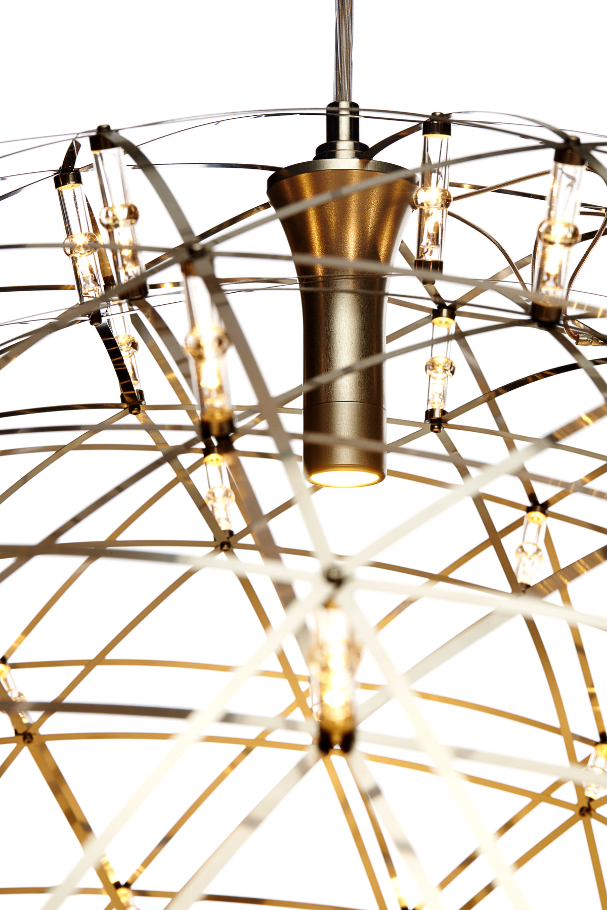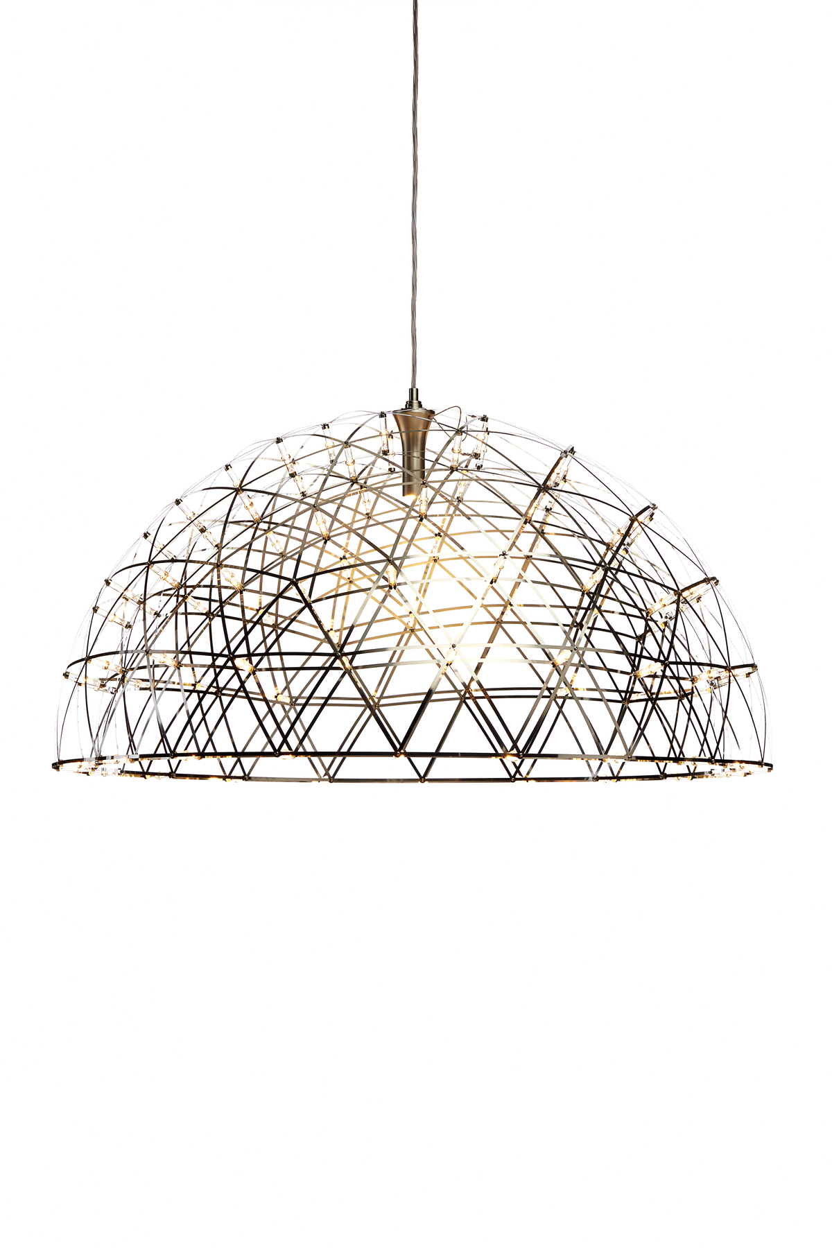 The Raimond lights: perfect spheres of mathematical ingredients punctuated by tiny LED lights. The transparent lenses are specially detailed to spread warm white light in every direction. Looking at the light feels like staring into the soft glow of a starry night. Into the essence. Inspired by the geodesic dome, designed by Buckminster Fuller, the Raimond lights are the result of almost forty years of research and dedication of mechanical engineer and self-taught designer Raimond Puts (1937 – 2012). Raimond Puts was not only intrigued by the shape of the geodesic dome, but also with the mystery of prime numbers. It’s no coincidence that the dimension of all Raimond lights resemble a prime number. The result of mathematical perfection, that brings the starry night sky into your home.
