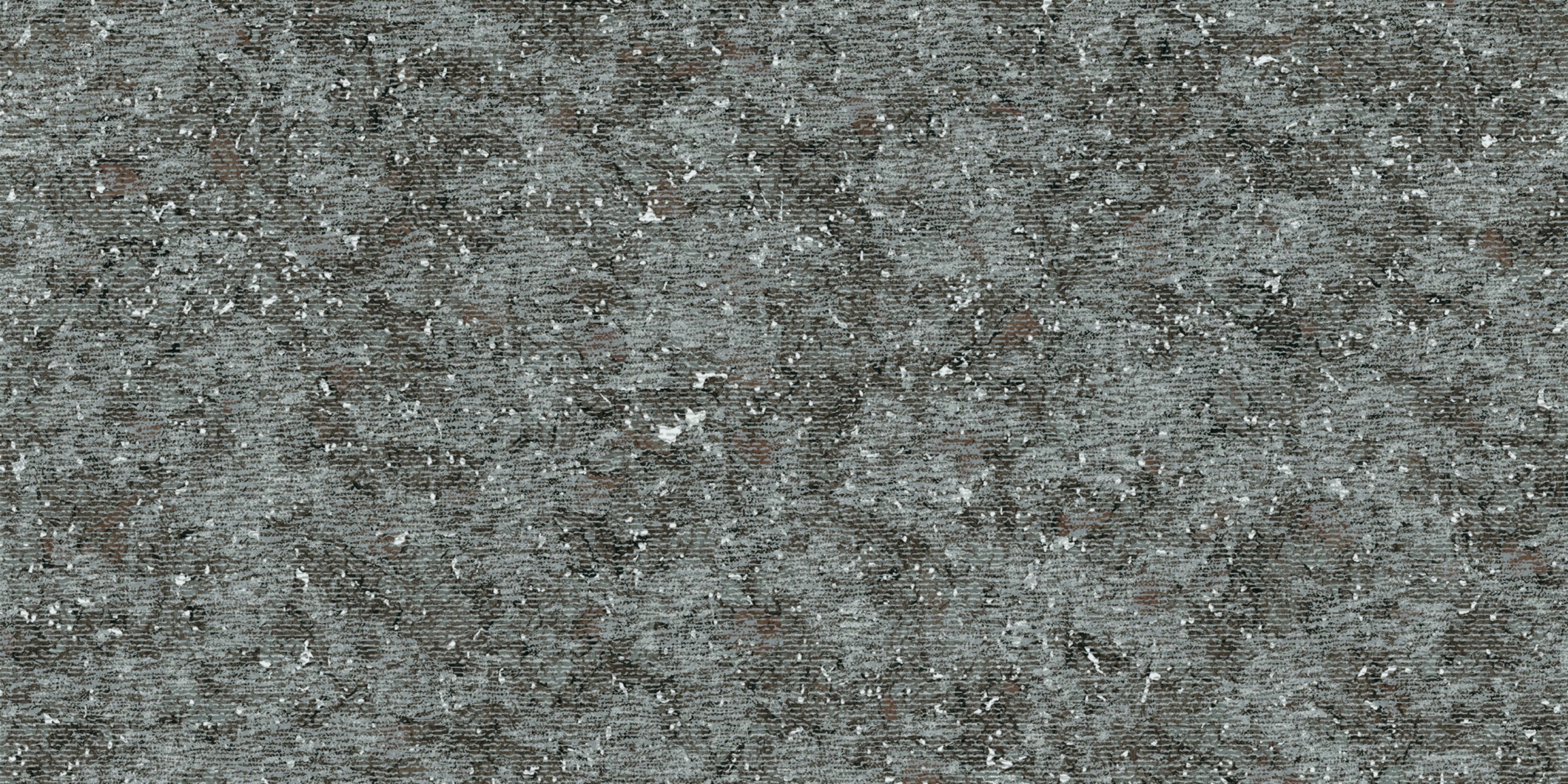 Foil based wallcovering lined with cork and a flock finish, based on the fur of the Bearded Leopard – pale yellow to deep gold, and a dark constellation of rosebuds adorning it.