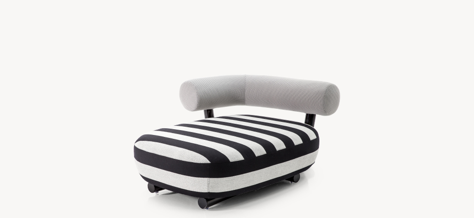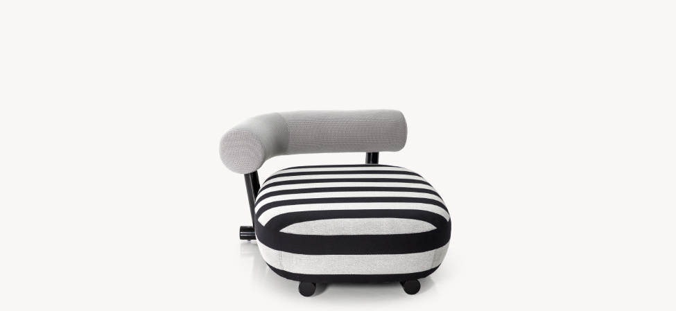 Anteporre il grosso al fino, prediligendo una scelta in controtendenza rispetto alla più comune ricerca sulla forma sottile. E, nonostante questo, mantenersi leggeri, lievi. Il progetto si articola così attorno all’aspetto più rassicurante dell’oversize: la semplicità. La struttura, essenziale e robusta, è costruita con un tubo in alluminio verniciato a polvere dal diametro di 80 mm. Appoggiato sopra, un cuscino di seduta dalla corporatura rotondeggiante, velata suggestione all’idea del modulo gonfiabile. Lo schienale, come una parentesi bold, promette comodità. L’effetto, oltre alla naturale simpatia, è quello di una piacevole rotondità, disinvolta e leggera.