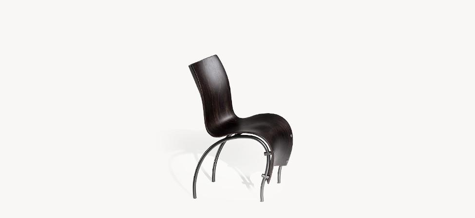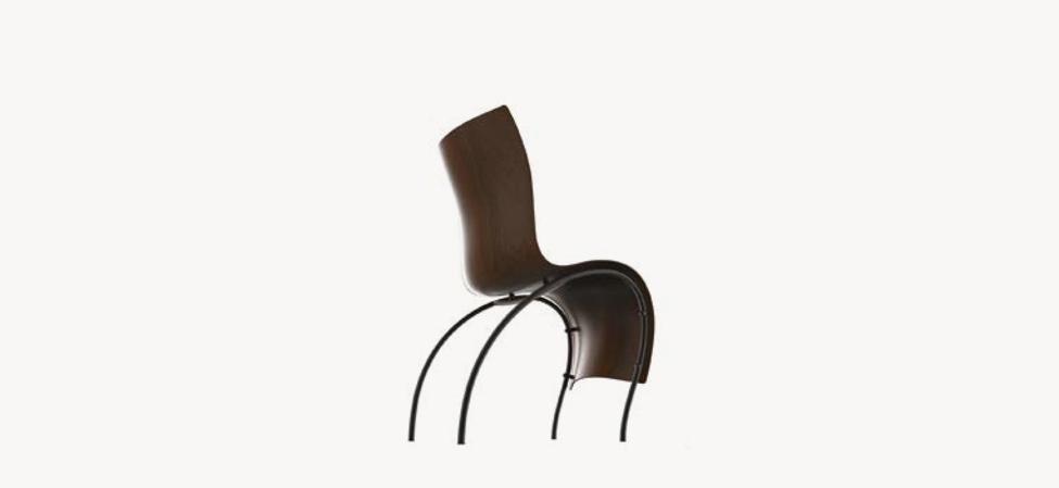 Ron Arad si confronta con il legno, lo plasma, ne comprende e controlla il comportamento, individuando nell’opera un punto di transizione all’interno della sua personale ricerca formale. Three Skin Chair, quasi fosse un elogio al lavoro modernista di Herbert Von Thaden, si pone nella tradizione dell’oggetto scultoreo prodotto utilizzando un unico materiale. Il risultato sorprende, per certi aspetti sembra negare l’evidenza percepita dai sensi: non c’è stampaggio, non c’è iniezione, non c’è un materiale termoplastico. è legno, solo legno curvato e verniciato.