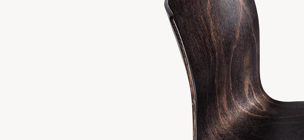Seduta in faggio curvato multistrato 3D tinto e gambe in acciaio verniciato a polveri.
