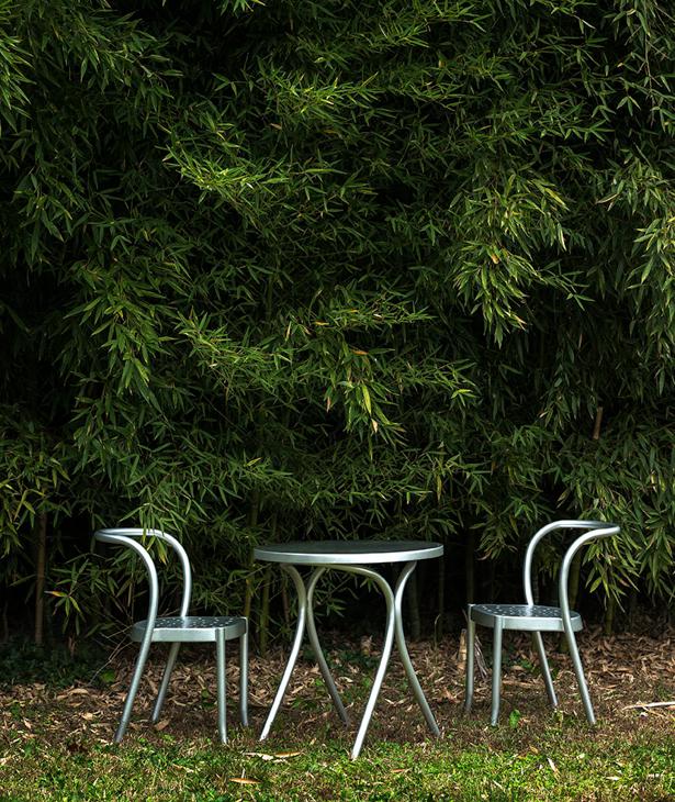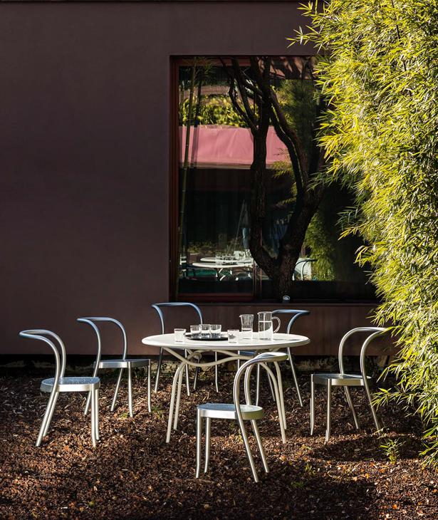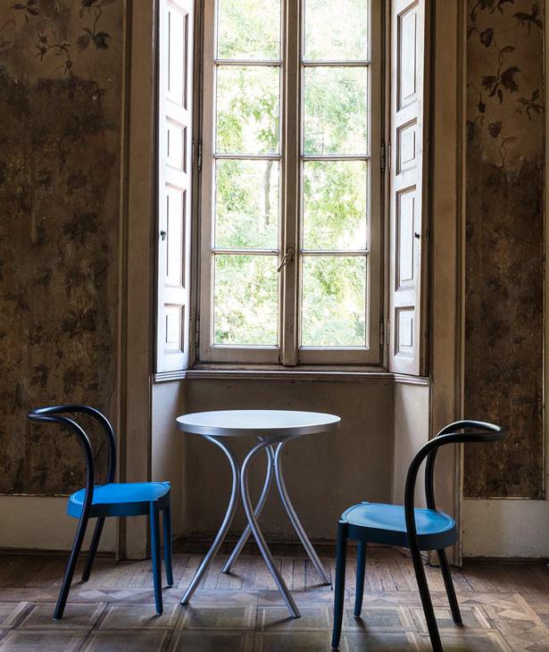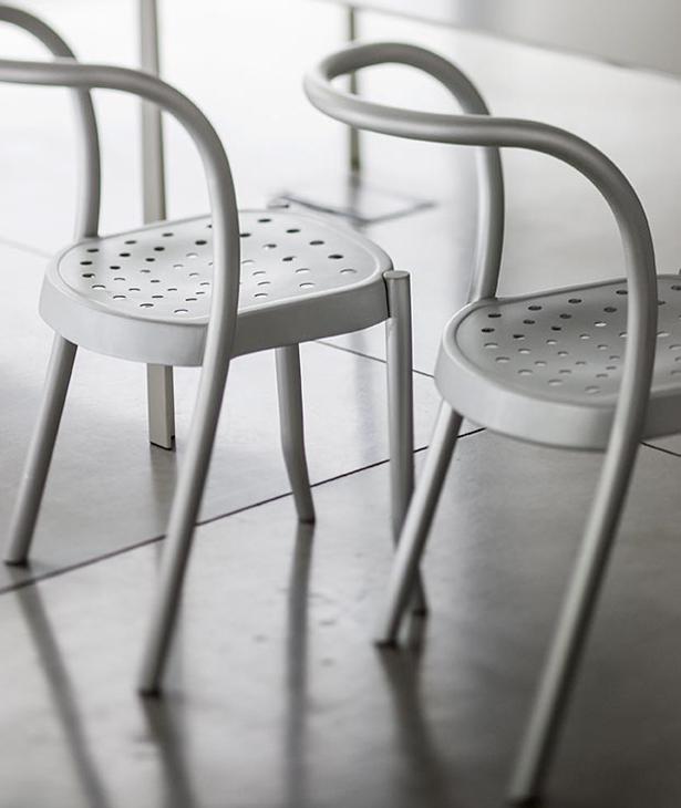 Un elogio alla tradizione “povera” della sedia reso attuale dall’utilizzo di due materiali in apparente contrasto tra loro. Due versioni, come se il legno e l’alluminio, nel superamento della distinzione tra artigianato e produzione industriale, fossero uno la conseguenza dell’altro. E viceversa.