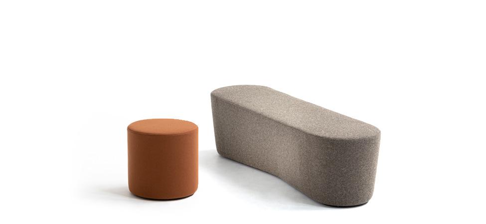 La collezione TABA è composta da otto pezzi: un divano, due poltrone, cinque ottoman. Questi offrono una vasta gamma di possibili usi sia in aree pubbliche che private.