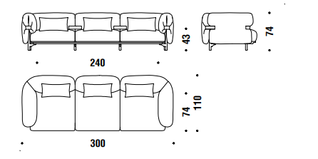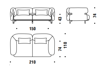 Imbottiture in poliuretano espanso ignifugo, fibra poliestere e chip di memory foam. Struttura in alluminio estruso e piedi in fusione di alluminio verniciato a polveri. Rivestimenti solamente in tessuto con cinture in pelle. La collezione Belt è sfoderabile.