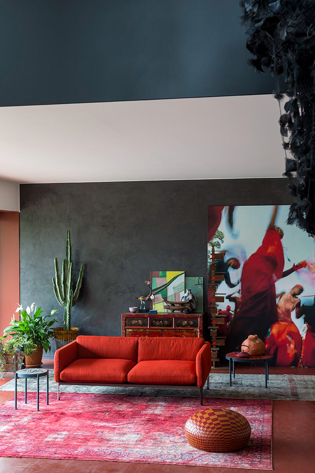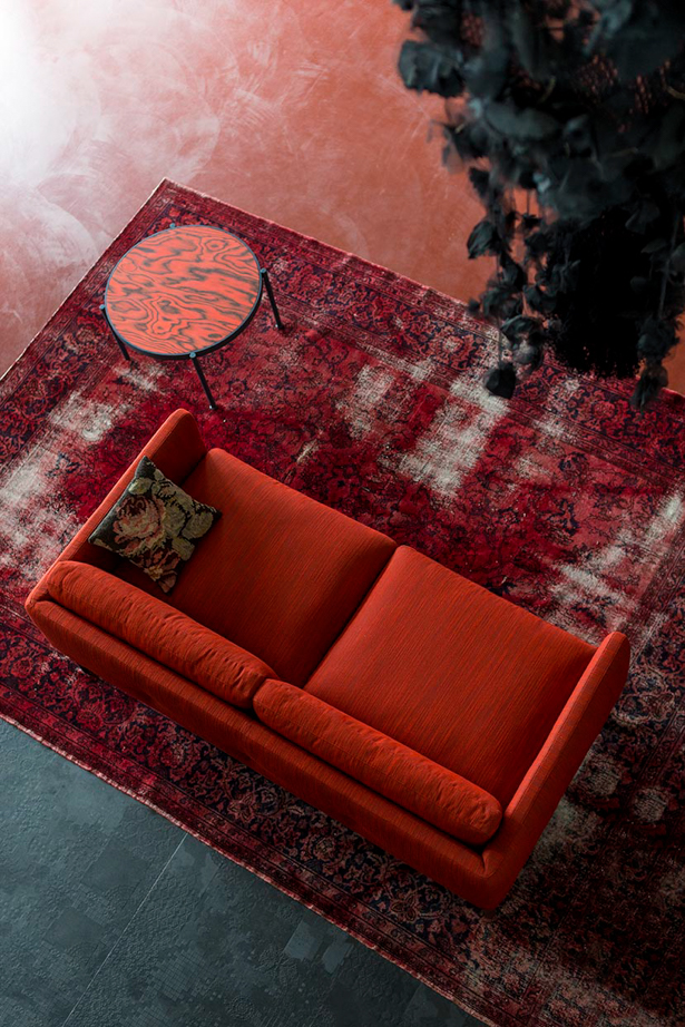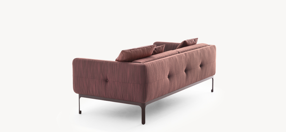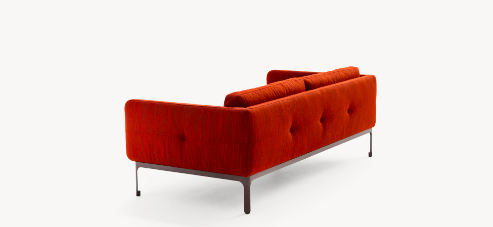 La collezione Modernista – pur avendo nel Modernismo radici e riferimenti – si distingue per l’ambizioso tentativo di integrare la componente figurativa, propria dei lavori di Nipa Doshi e Jonathan Levien, alla razionalità lineare della struttura geometrica del rettangolo. Il risultato, sotto il profilo dell’innovazione formale, è una conquista. Alla classicità della composizione, alla doverosa attenzione per la resa delle superfici e dei materiali, i due designer contrappongono l’accentuazione di pochi significativi particolari: il bottone centrale, nega e allo stesso tempo rielabora il fascino borghese della lavorazione capitonné, mentre la base modera l’estetica della lavorazione industriale, attualizzata nella scelta dei colori e nell’uso dell’acciaio tagliato al laser, piegato e saldato in una unica struttura. Con Casa modernista – velato omaggio a Gregori Warchavchik, architetto russo-ucraino riconosciuto per il ruolo di promotore dell’architettura moderna nel Brasile degli anni Venti – la precisione formale e la sobrietà oggettiva presente nei primi modelli si addolcisce verso una maggior apertura al relax e alla spontaneità.