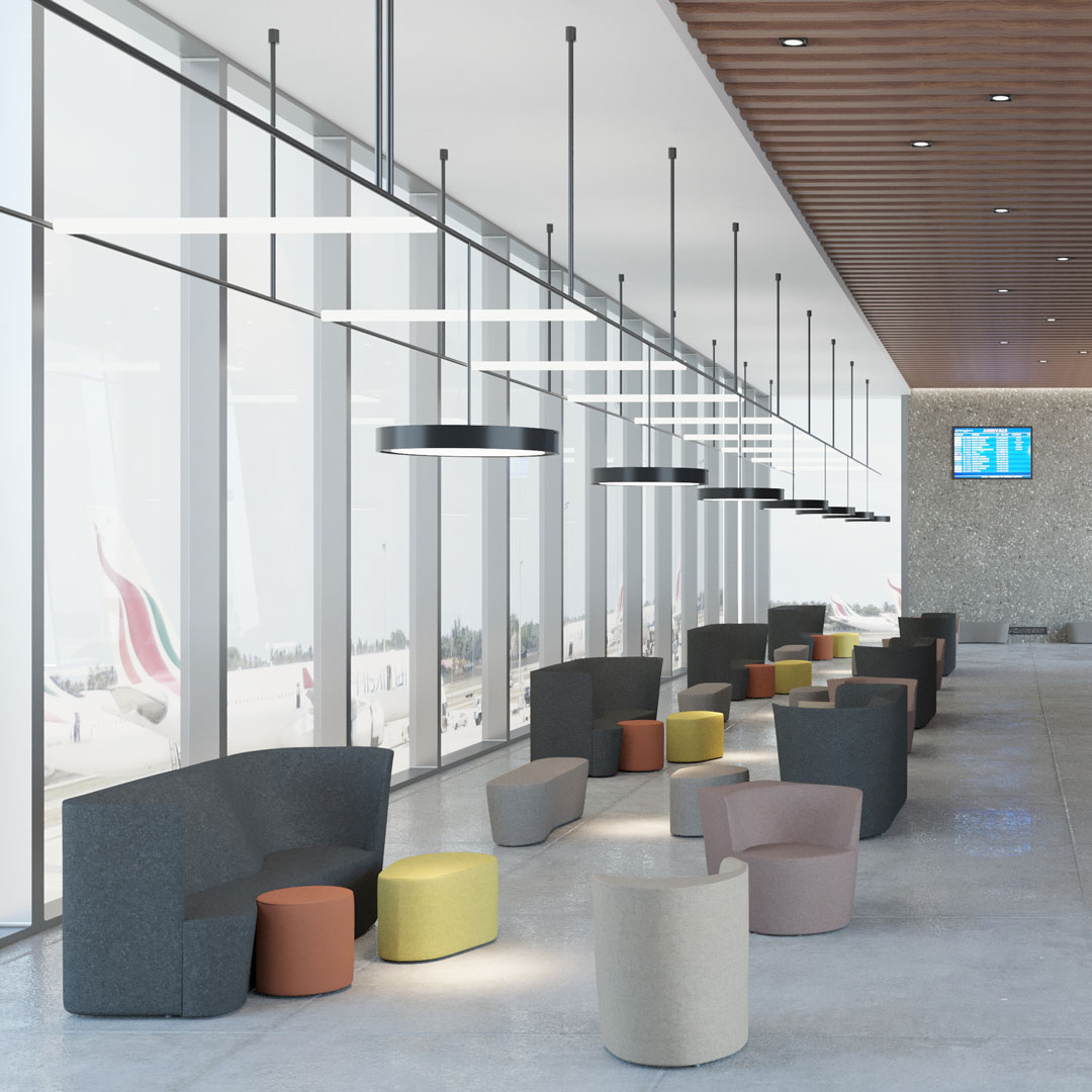 La collezione TABA è composta da otto pezzi: un divano, due poltrone, cinque ottoman. Questi offrono una vasta gamma di possibili usi sia in aree pubbliche che private.