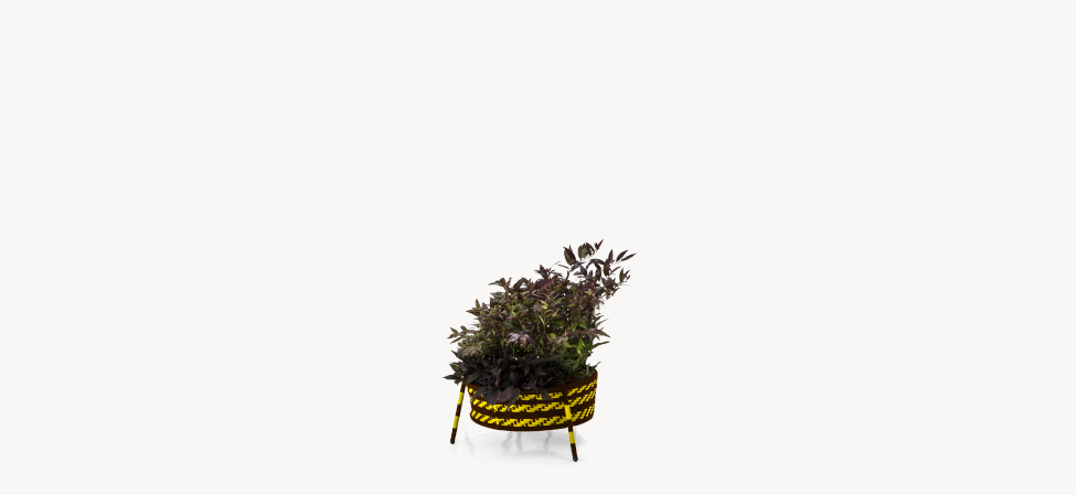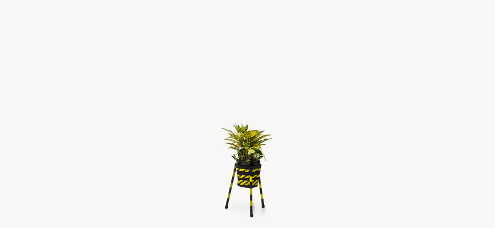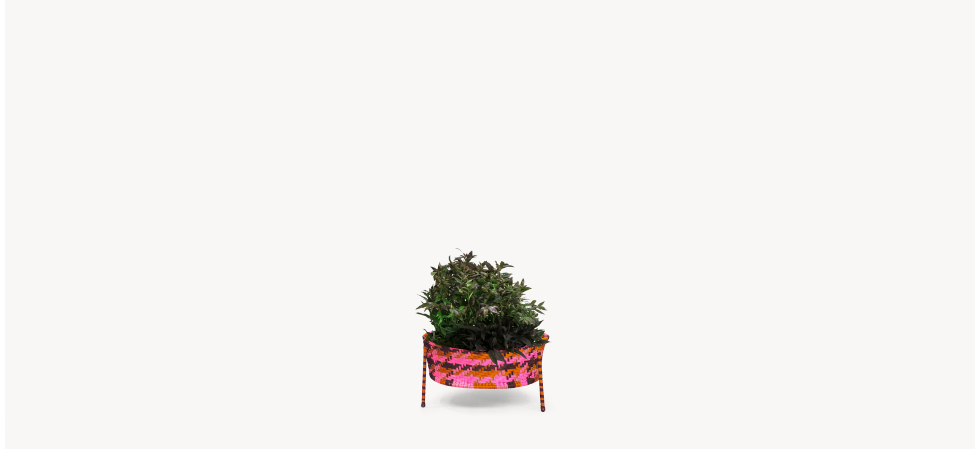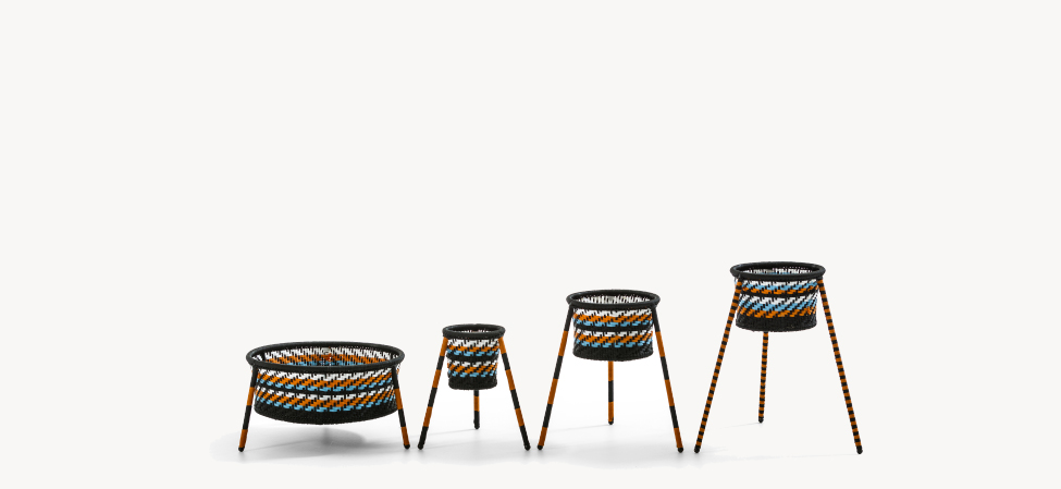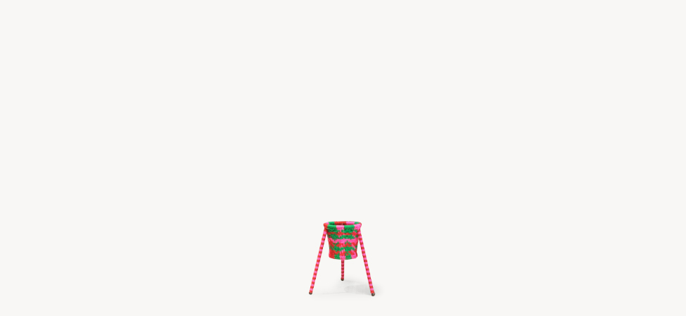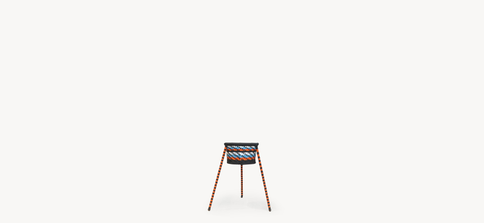 Struttura in acciaio verniciato e fili colorati in polietilene intrecciati a mano. Ordine minimo di 2 box contenenti 4 pezzi ciascuno.