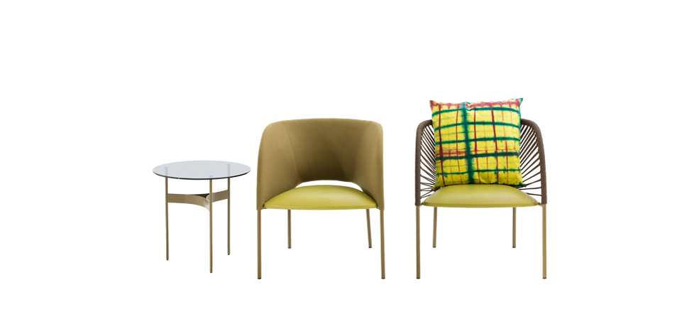 Yumi é una poltrona con un principio semplice e dal linguaggio sofisticato. Le sue linee sinuose e la forma avvolgente creano una seduta invitante, una cesta formata da un arco piegato la mantiene leggera. Uno schienale separato dalla seduta permette di giocare con infinite combinazioni di tessuto, pelli e finiture. Il progetto Yumi é un’ordinata rappresentazione di un armonioso arco piegato. I possibili stili di Yumi vanno dal giocoso a quello piú sofisticato della versione imbottita, il che rende la poltrona adatta per spazi residenziali e commerciali, per l’interno e l’esterno. La famiglia include sedie, poltroncine e tavolini, in modo da permettere agli interior designer di coprire intere aree di un progetto con prodotti della stessa famiglia in versioni uniche e diverse tra loro.