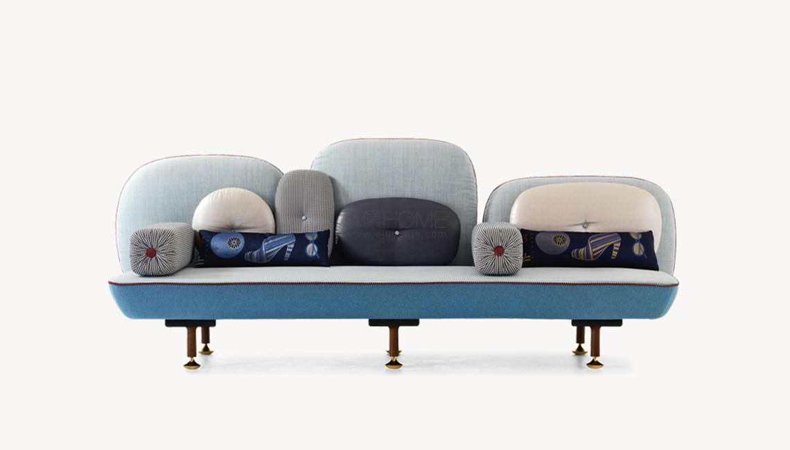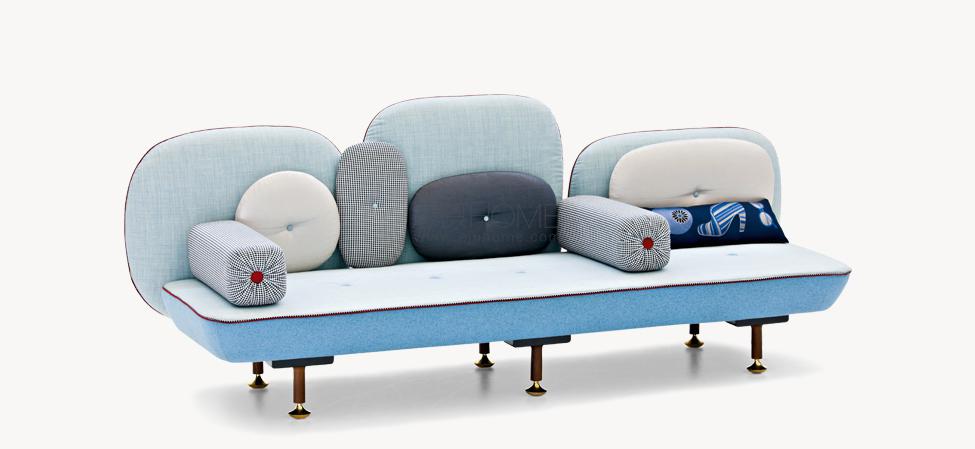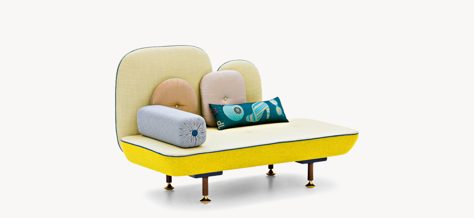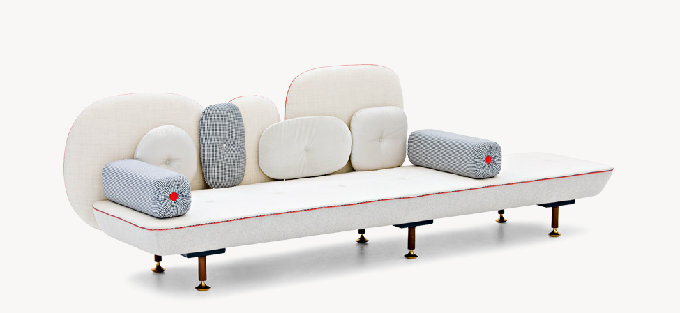 My Beautiful Backside è una collezione di sedute in cui gli schienali sono una composizione colorata con cuscini in varie forme. L’uso di simboli, quali pulsanti su spalle cuscino sono il modo di comunicare una serie di messaggi. Questi simboli forniscono anche un mezzo per la personalizzazione di ogni seduta, rendendola unica, proprio come in un capo di abbigliamento. Il materasso superiore è ricoperto da una composizione di oggetti diversi ispirati ad una principessa contemporanea e vengono ricamati in oro e argento.