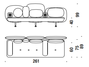 Sedili in poliuretano espanso indeformabile a densità differenziate e fibra poliestere con struttura interna in legno. Schienali in espanso schiumato a freddo ignifugo con struttura interna in acciaio. Piedi in noce naturale con sottopiedi in metallo ottonato. La collezione My Beautiful Backside non è sfoderabile.
