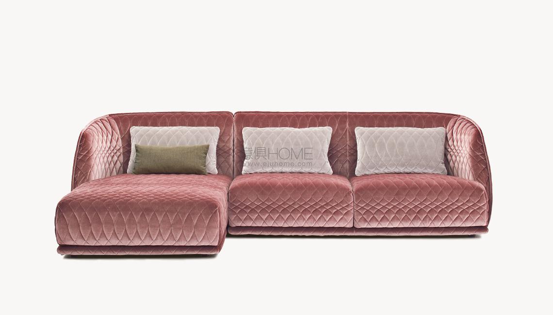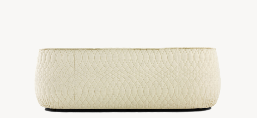 Una collezione caratterizzata dall’accostamento di due volumi, una scocca imbottita che avvolge in continuità i grandi cuscini di seduta. Forme curve esaltate dall’assenza totale di spigoli e dalla morbidezza del tessuto, stimolo sensoriale impreziosito da un decoro trapuntato dove il filo, come una matita, segna un’elegante geometria tridimensionale. Redondo, nel disegno, si ispira agli interni imbottiti delle auto americane degli anni ’50 e ’60, alle forme morbide della carrozzeria, al comfort on-the-road che accompagnava nei lunghi viaggi tra le East e la West Coast. Il punto di vista è, per chi guarda, quello di un palcoscenico dove accadono piccole storie quotidiane.