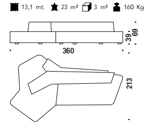 Elementi in poliuretano espanso ignifugo indeformabile a densità differenziate e fibra poliestere con struttura interna in legno. Piedi in polipropilene nero avvitati alla struttura. La collezione Rift non è sfoderabile.