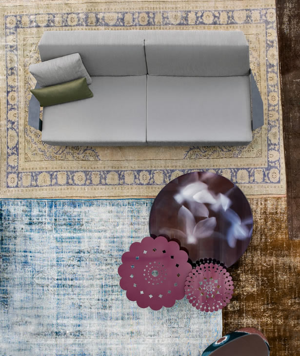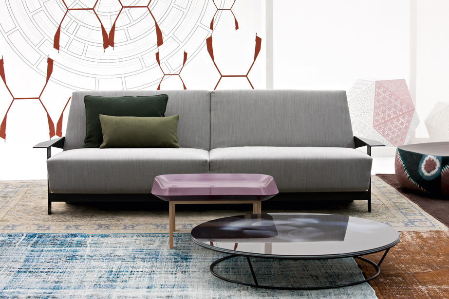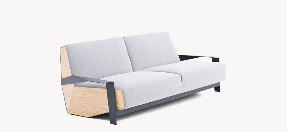 Ricoprire il piacere di una formalità elegante e sofisticata attraverso uno stile architettonico ispirato al modernismo californiano degli anni ’50. Un sistema costituito da tre divani, due poltrone e una poltroncina, forme prismatiche dalle geometrie continue giocate tra volumi pieni e vuoti. I materiali rimandano direttamente agli elementi della natura e al loro mutare in contrasto con il ritmo frenetico della vita contemporanea. Una sintesi plastica che fa riemergere oggi, in modo indiretto, la visione utopica di quegli anni. Il nome, Silver lake, è quello del quartiere di Los Angeles Downtown, noto per la presenza di molte case firmate dai grandi architetti modernisti.